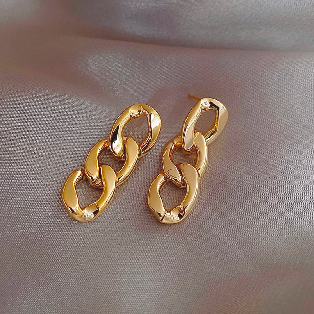 Aros de cadena gruesa de corte geométrico estilo vintage. ¡Te verás estupenda!