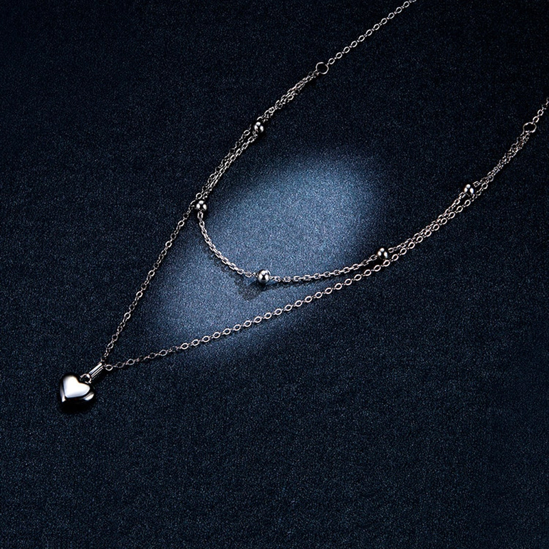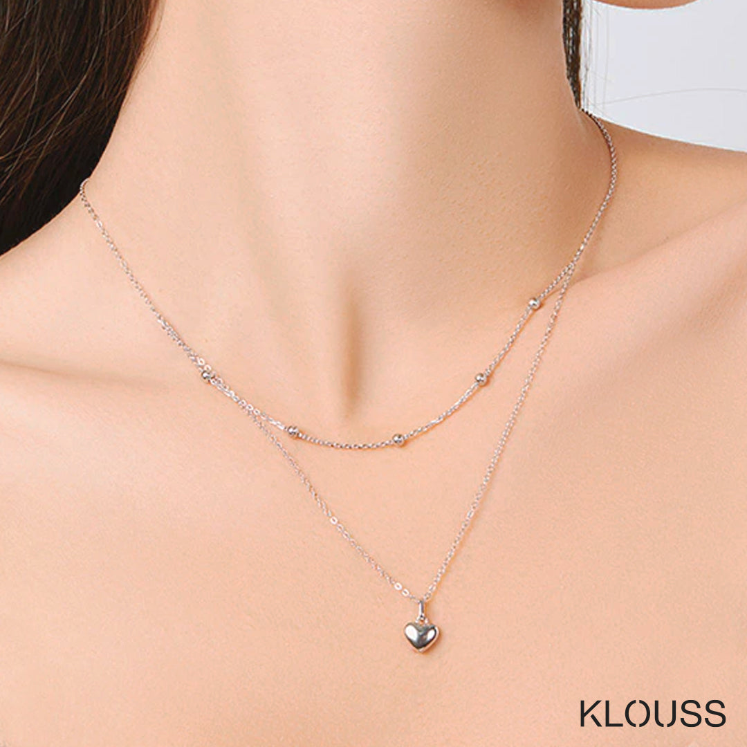 Collar de cadena de doble capa con colgante de corazón - Klouss - Chile - Mujer - Collar -