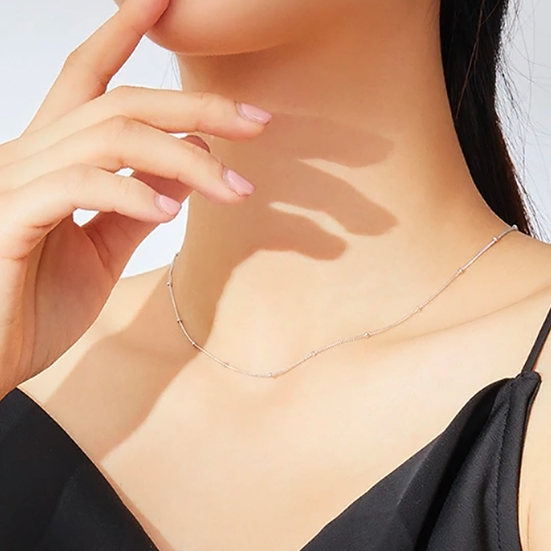 Lindo y elegante collar de plata enchapado en platino con cuentas que le dan un estilo elegante y top.
