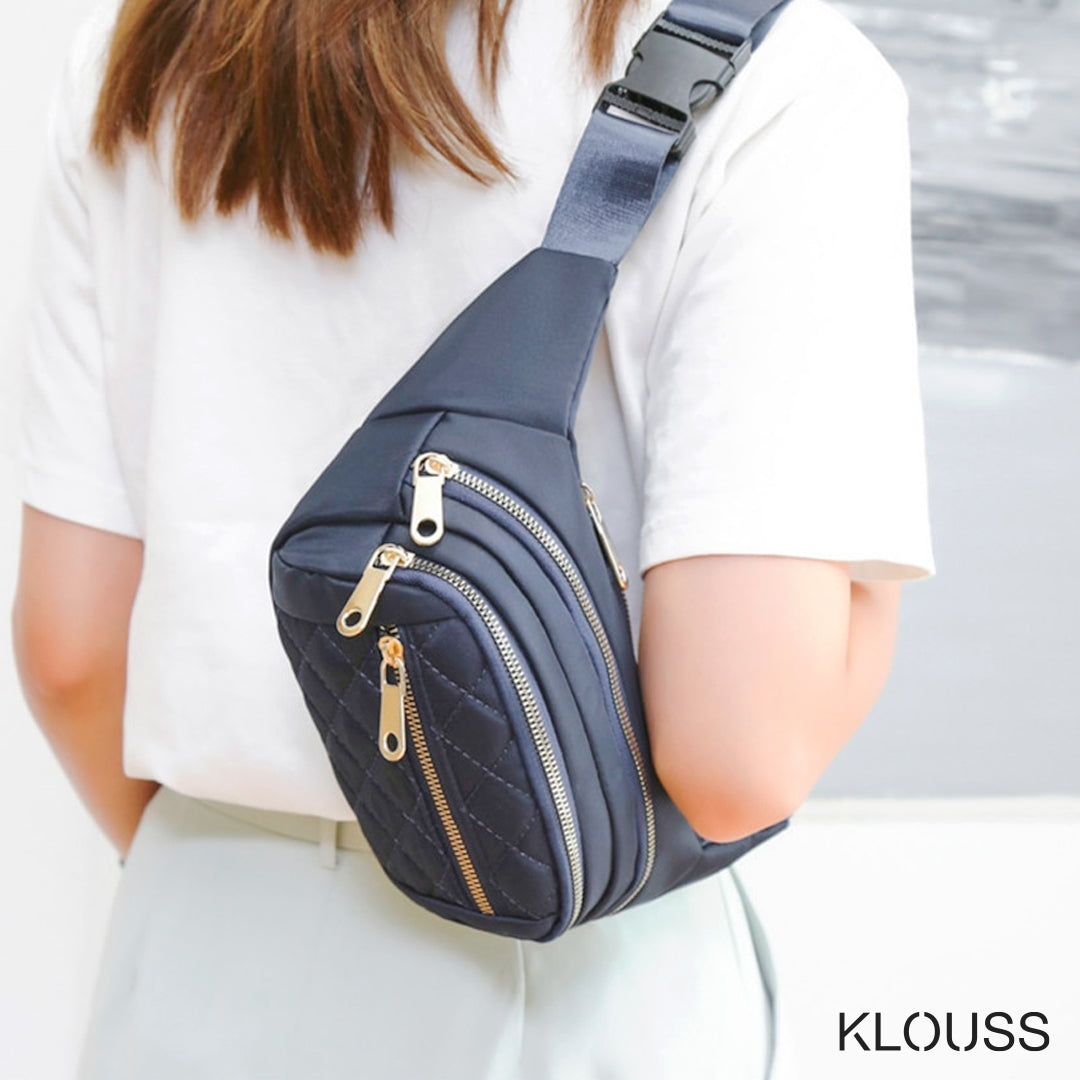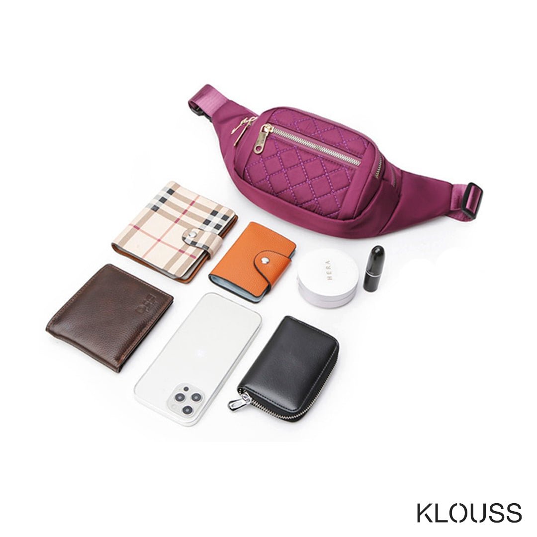 Lindo banano para mujer de tela resistente al agua y tres compartimentos con cierre metálico. Ideal para llevar lo necesario cuando salgas. ¡Te va a encantar!