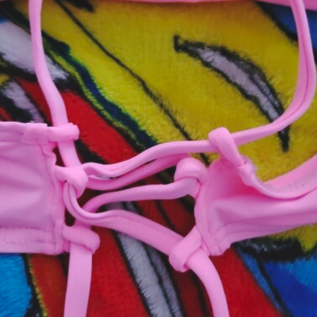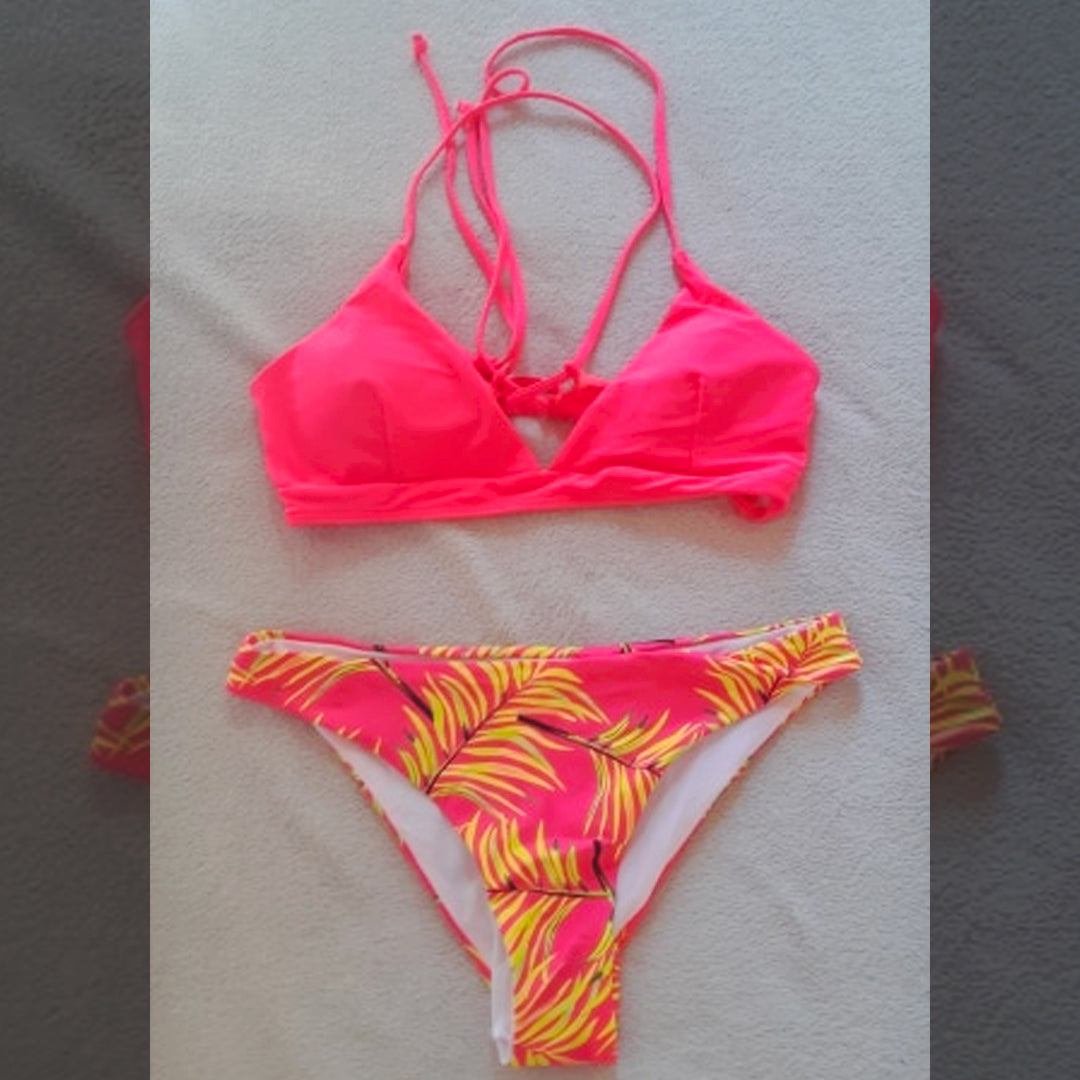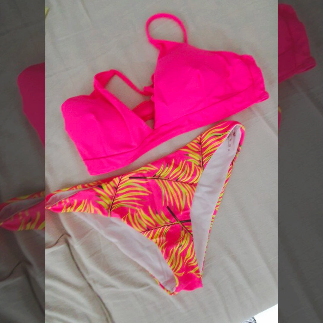 Precioso conjunto de Bikini de Top Plano y Calzón estampado con textura de hojas.