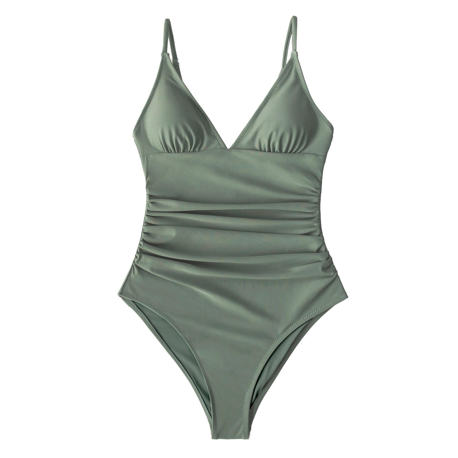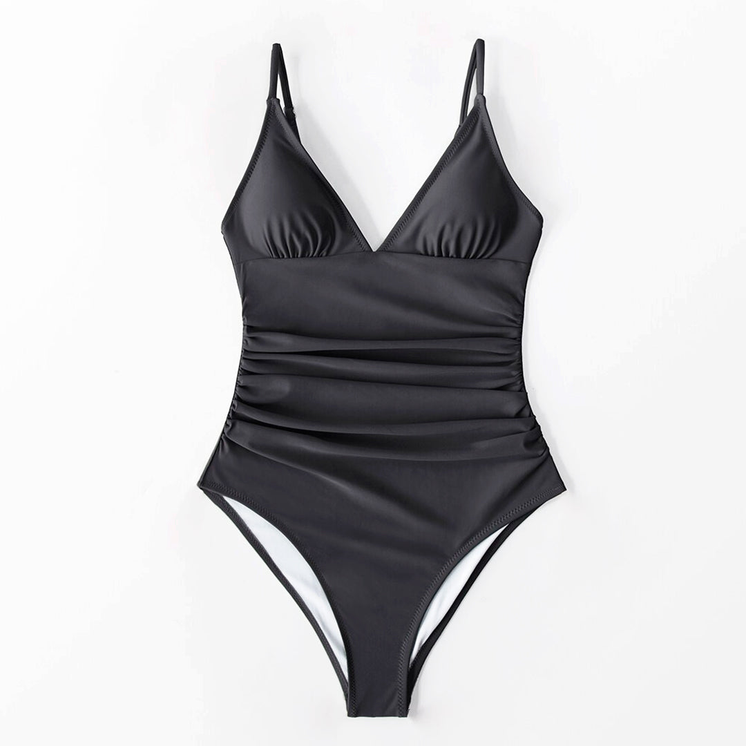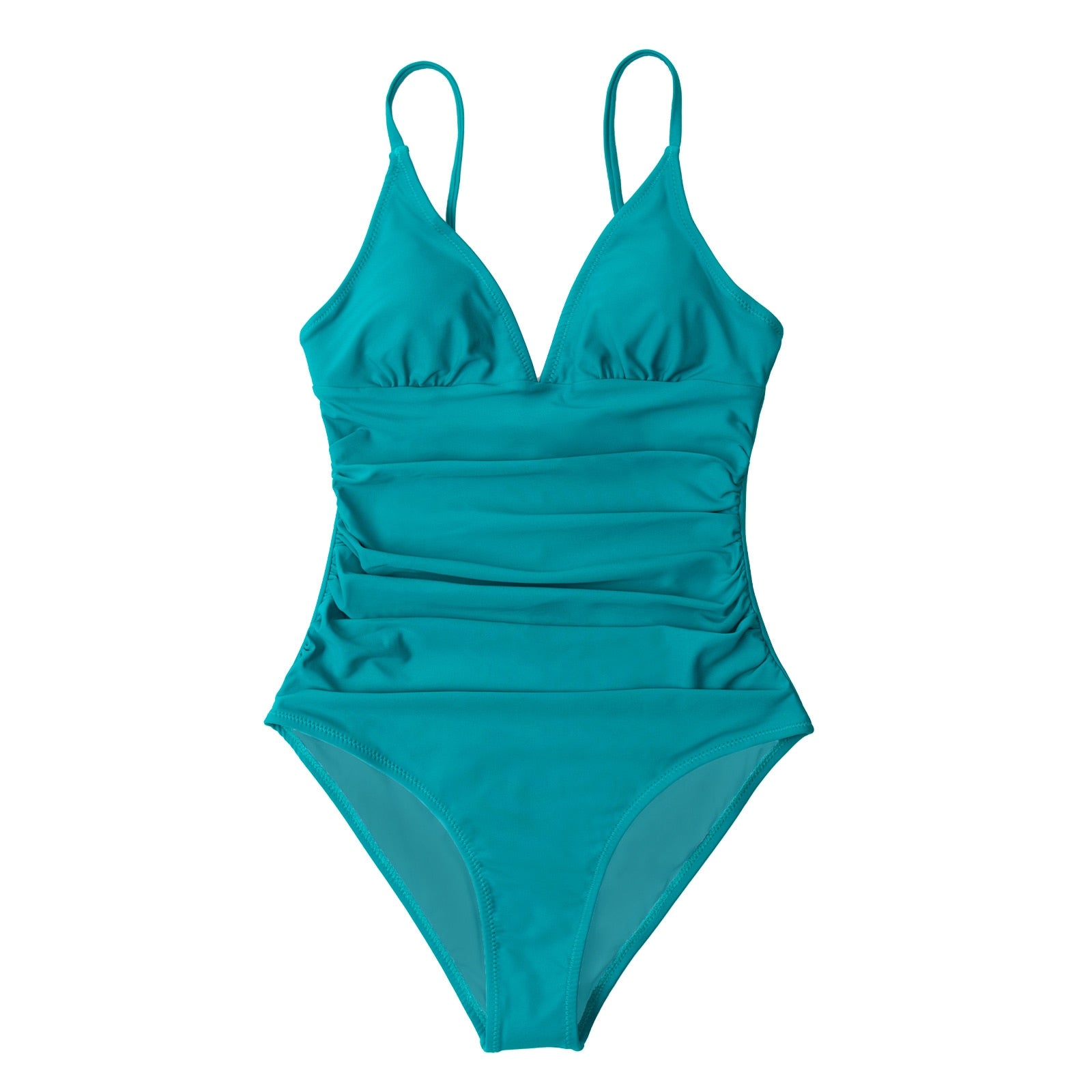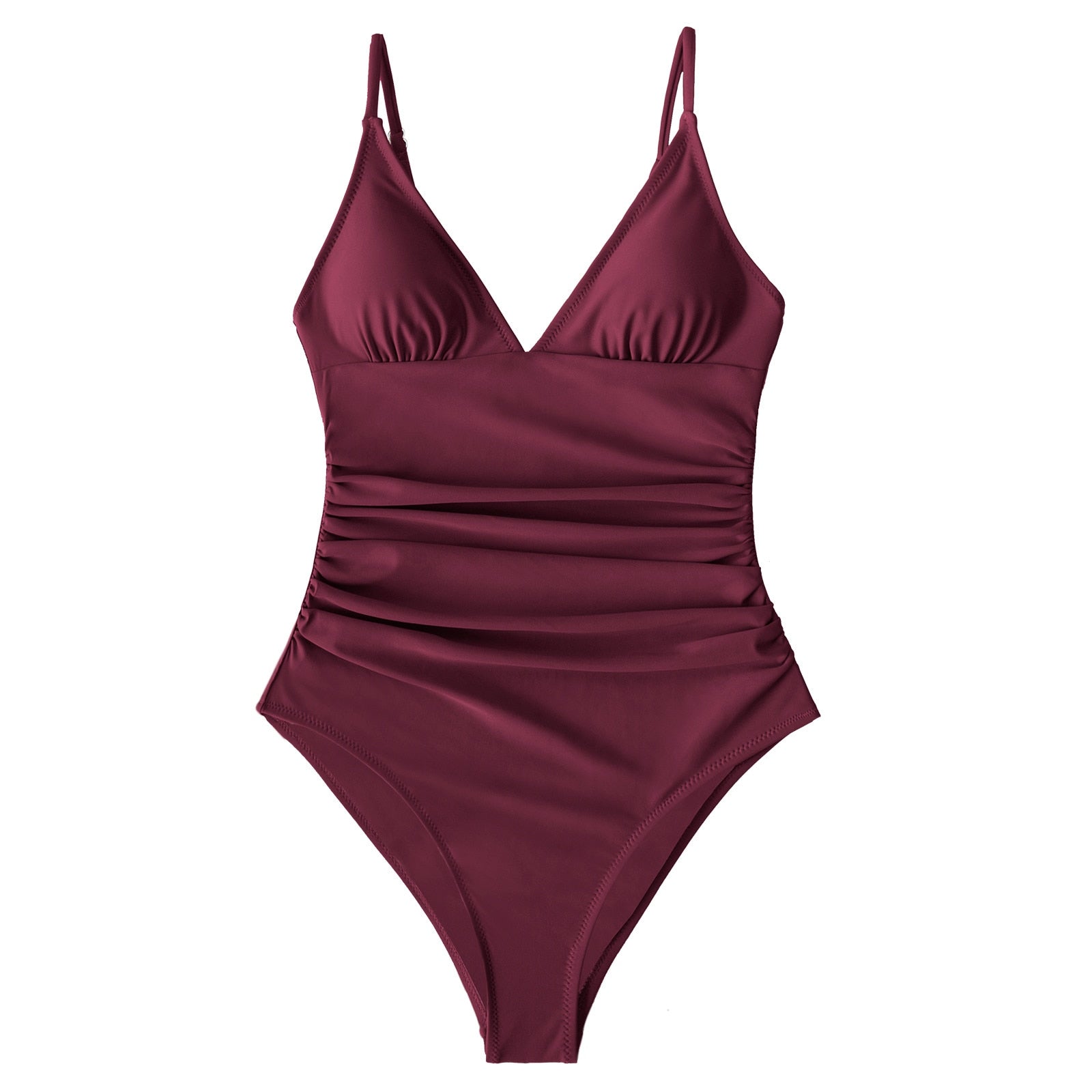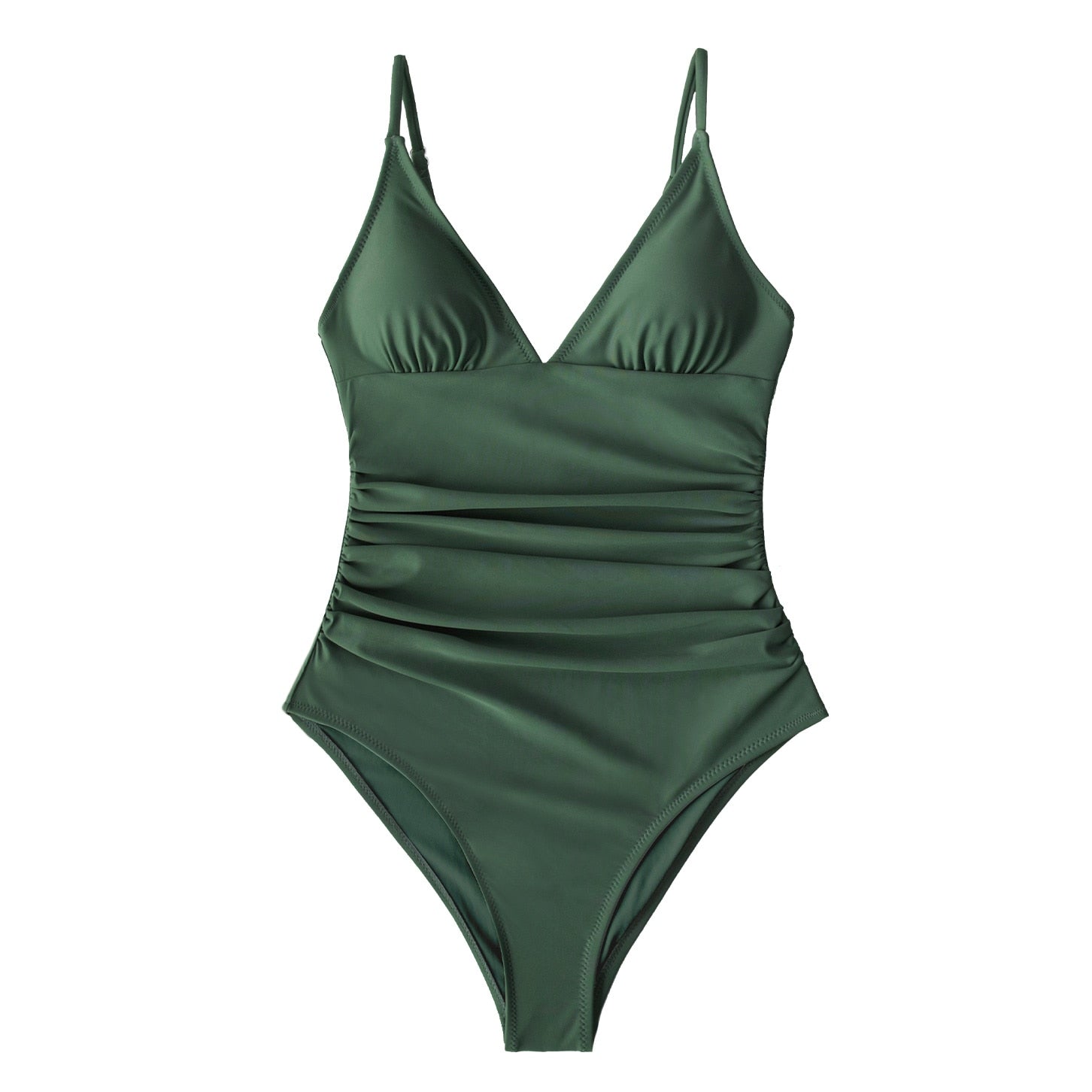Lindo traje de baño para mujer de cuerpo completo y escote en "v". De diseño liso y de soporte en la parte superior. ¡Te va a encantar!