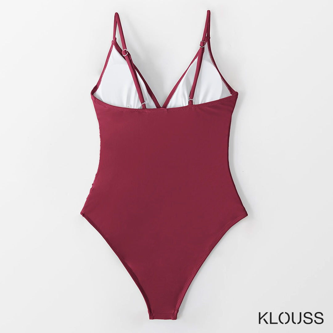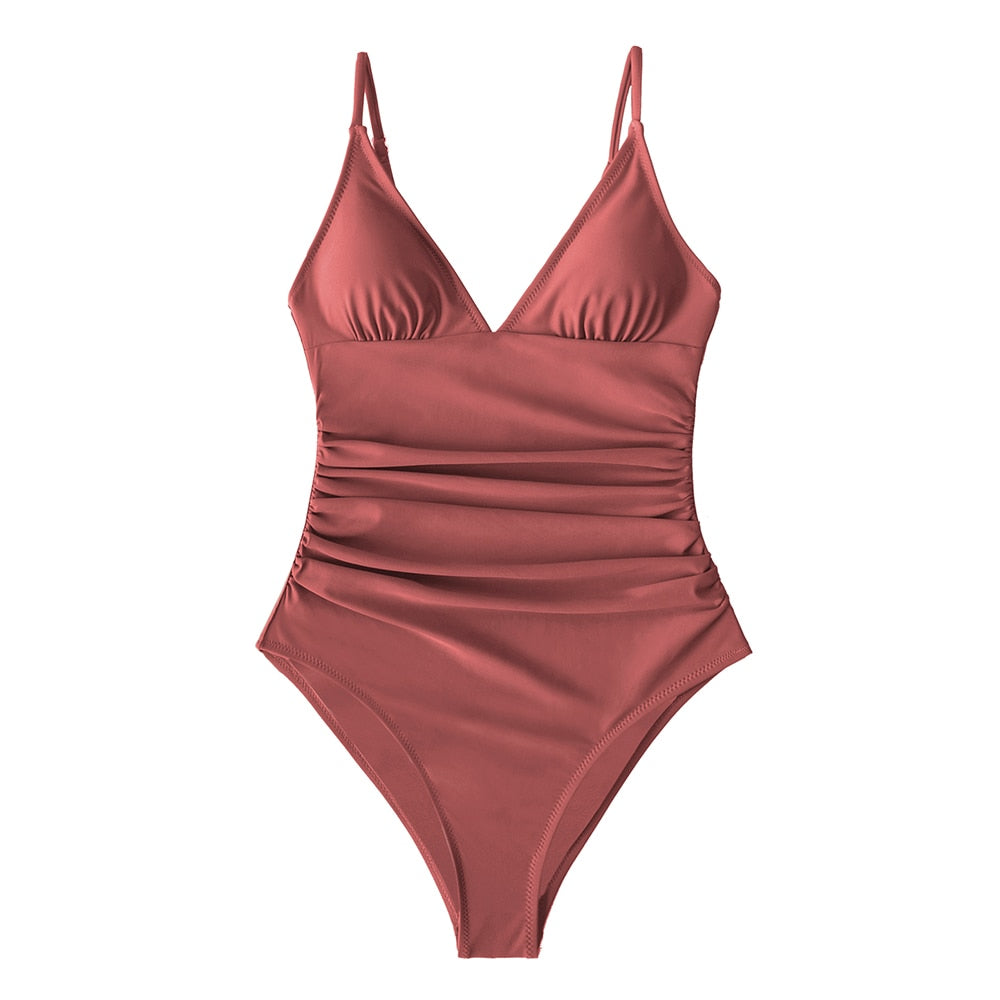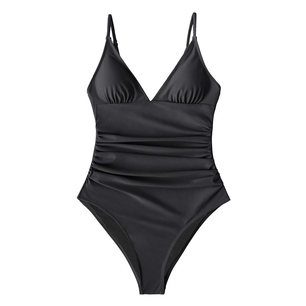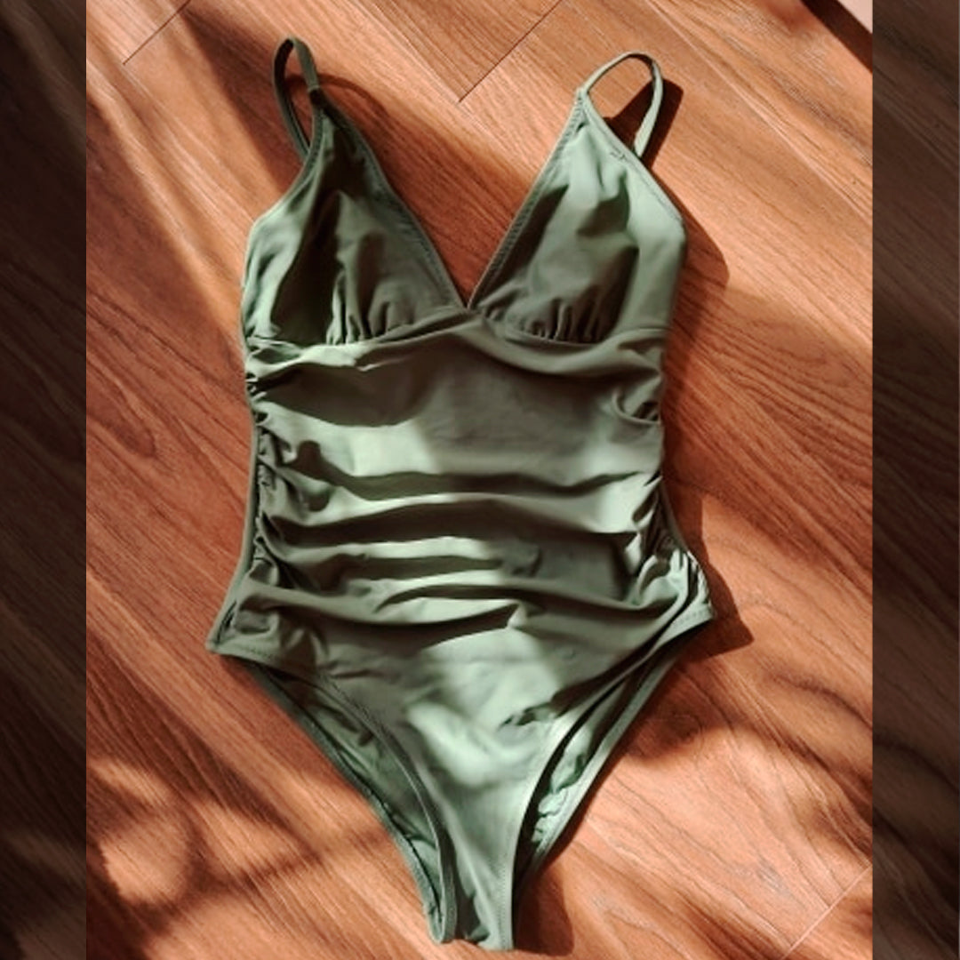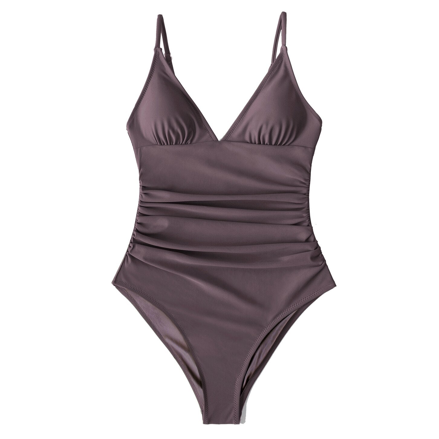 Lindo traje de baño para mujer de cuerpo completo y escote en "v". De diseño liso y de soporte en la parte superior. ¡Te va a encantar!
