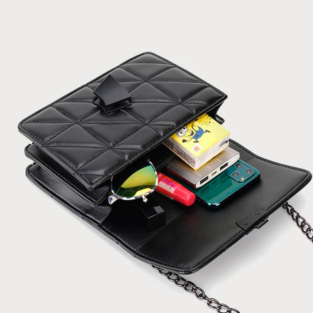 Linda cartera de diseño acolchado de 3 bolsillos internos y uno con cierre metálico. ¡Demasiado útil!