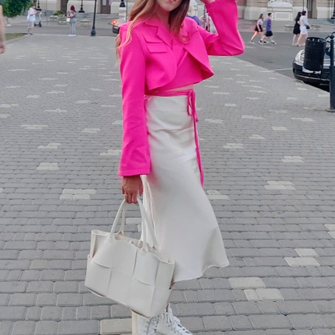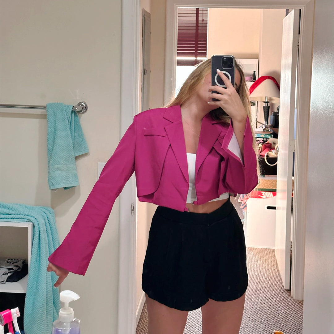 Precioso blazer corto para mujer de manga larga y tiritas de amarre. ¡Te va a encantar!