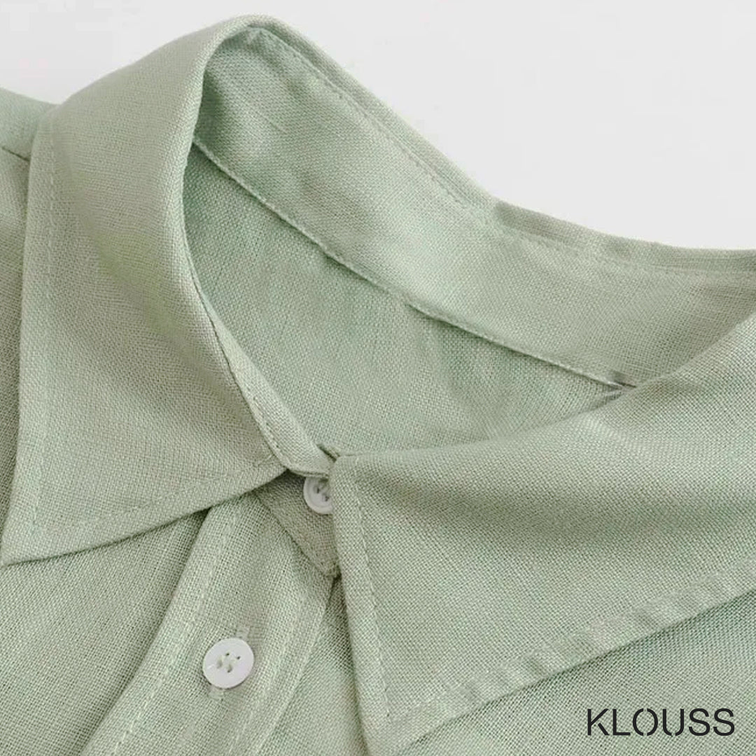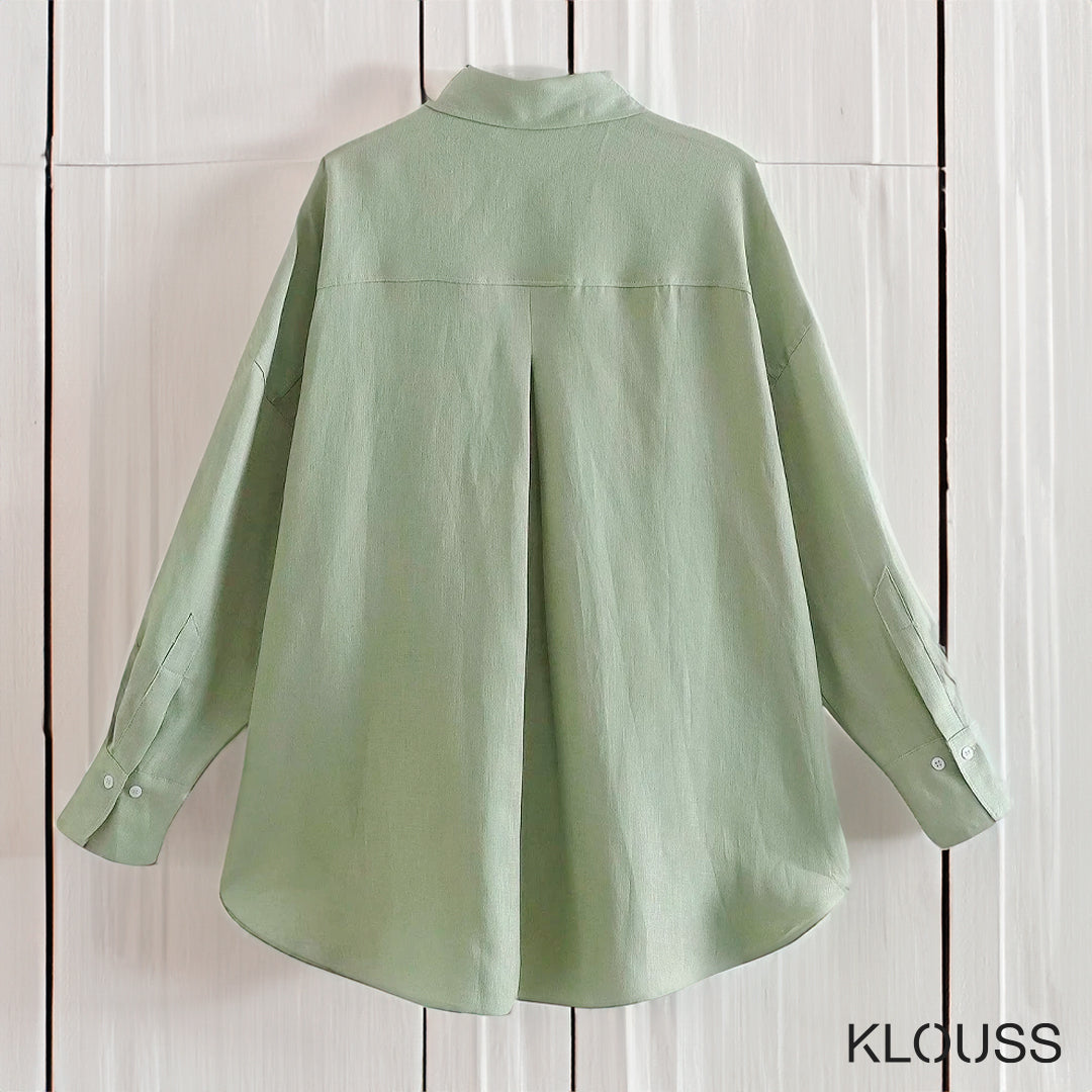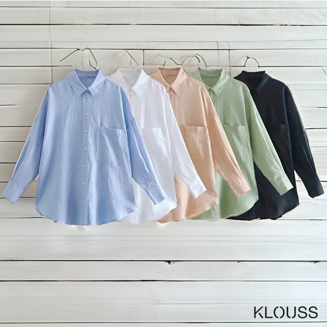 Preciosa blusa para mujer de tela liviana tipo lino de color plano y cierre de botones. Disponible en 5 colores y 4 diferentes tallas. ¡Te va a encantar!