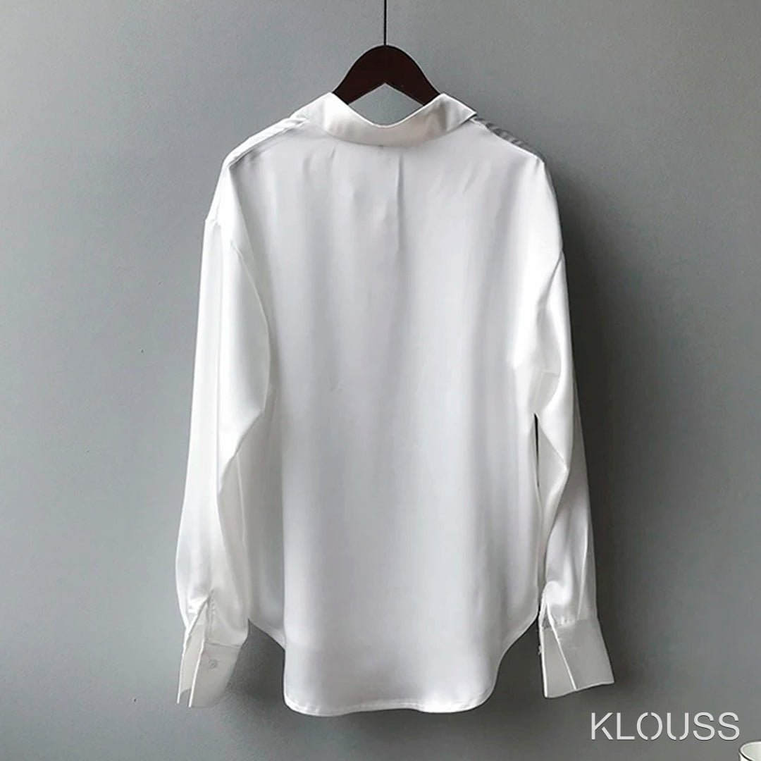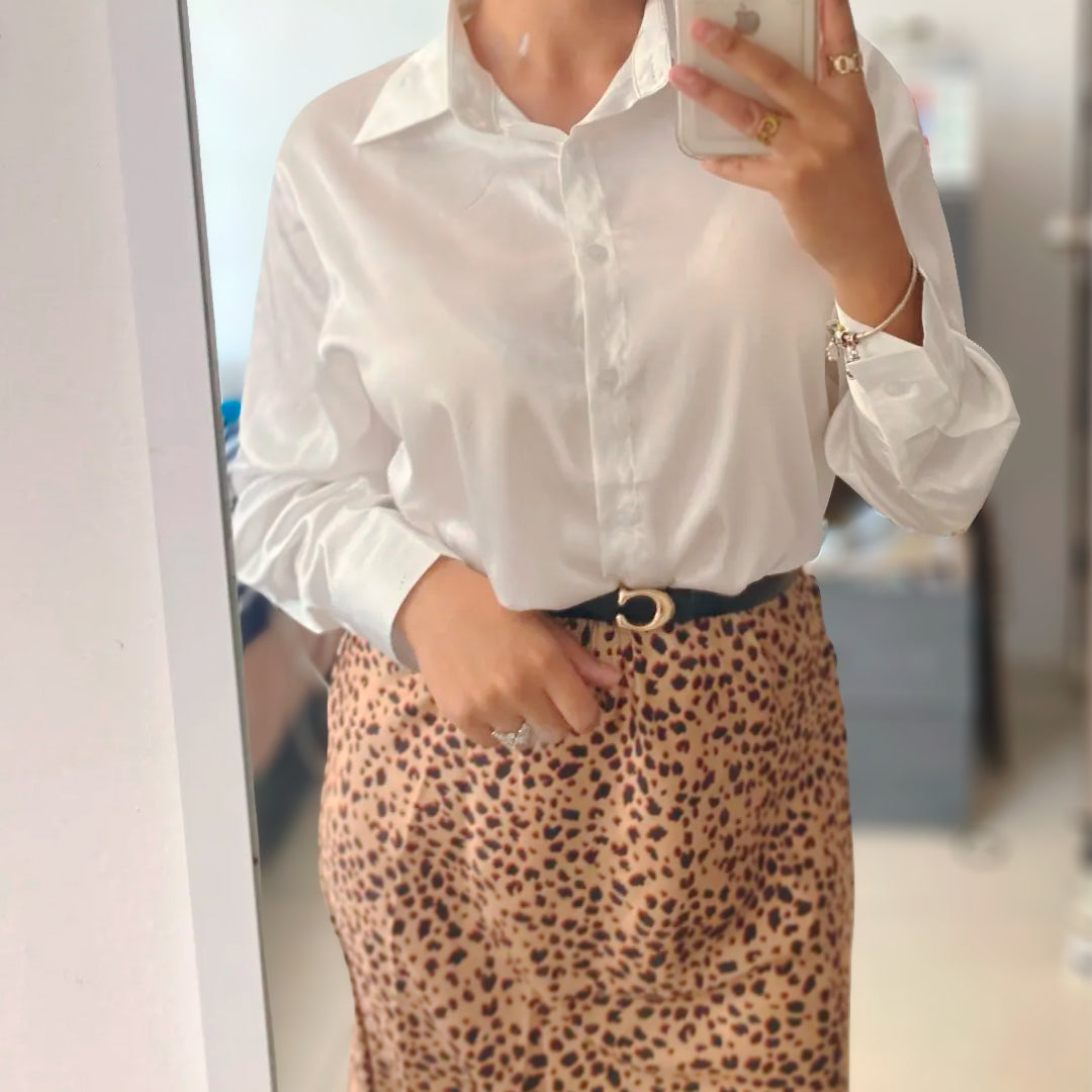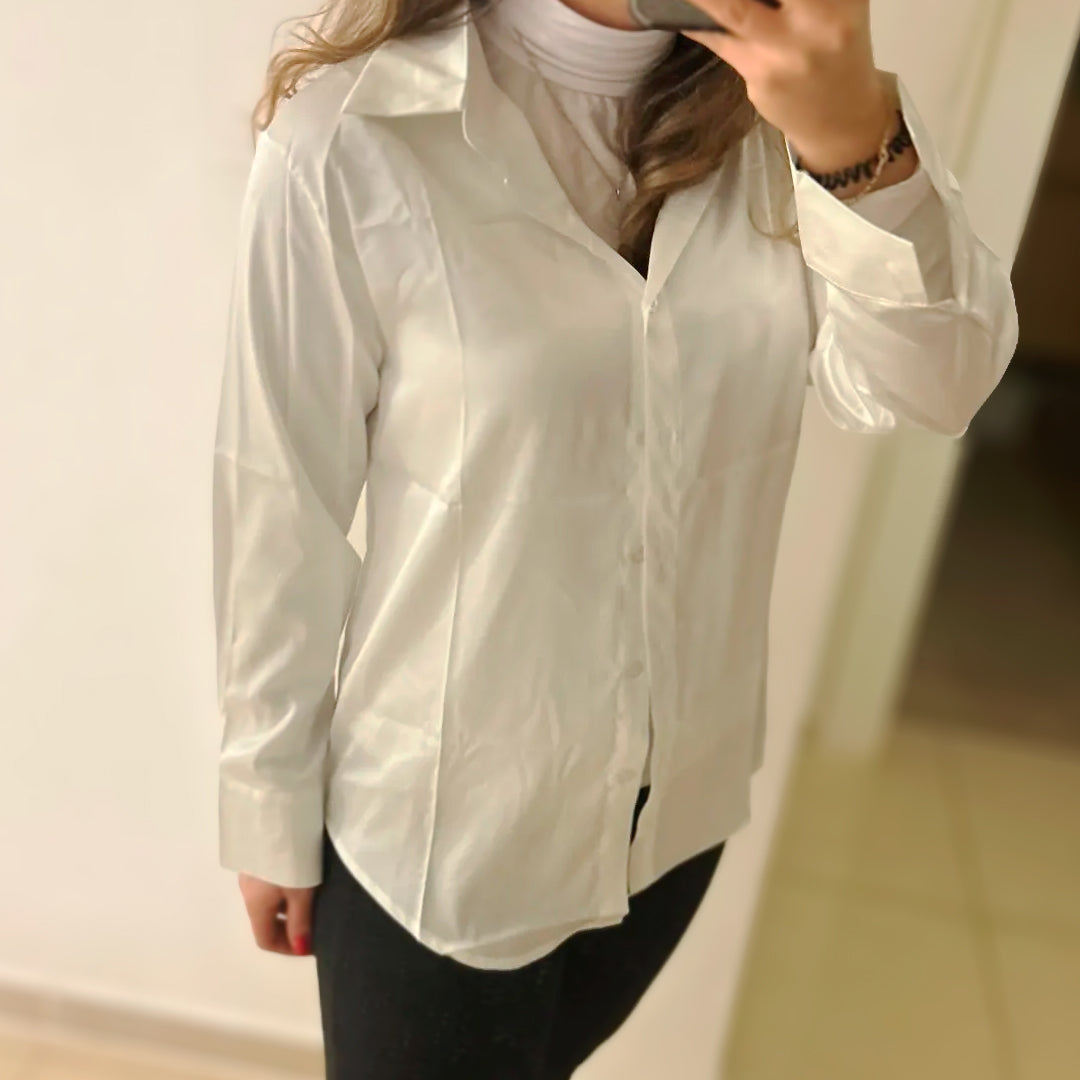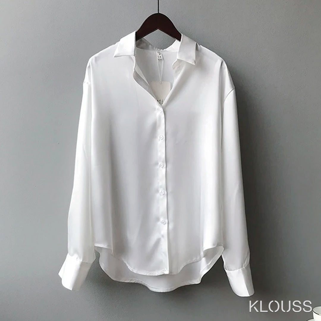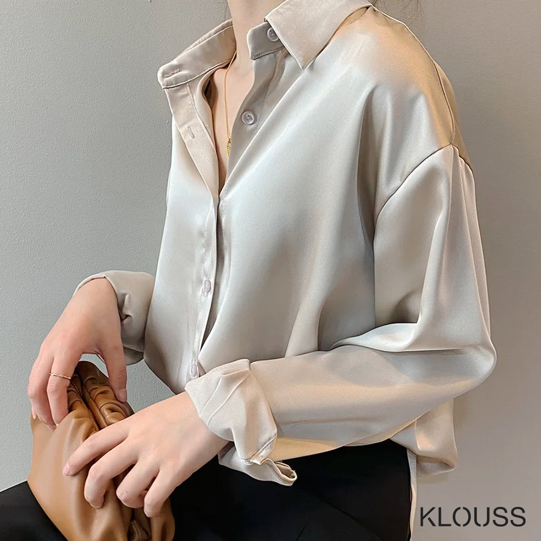 Preciosa blusa para mujer de tela tipo seda, con cierre de botones y cuello liso. Diseñada con ajuste holgado. Disponible en 5 colores ¡Te va a encantar!