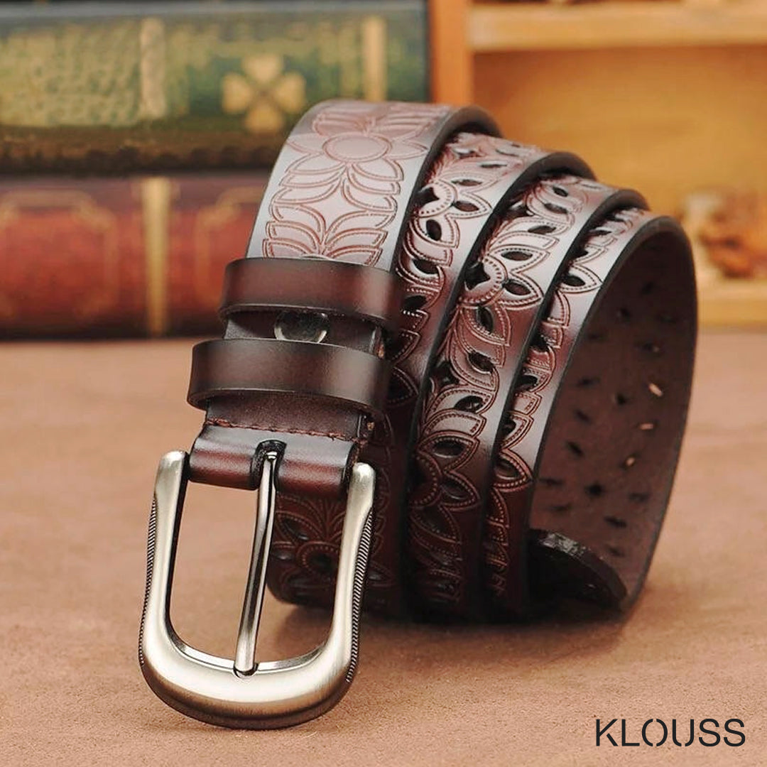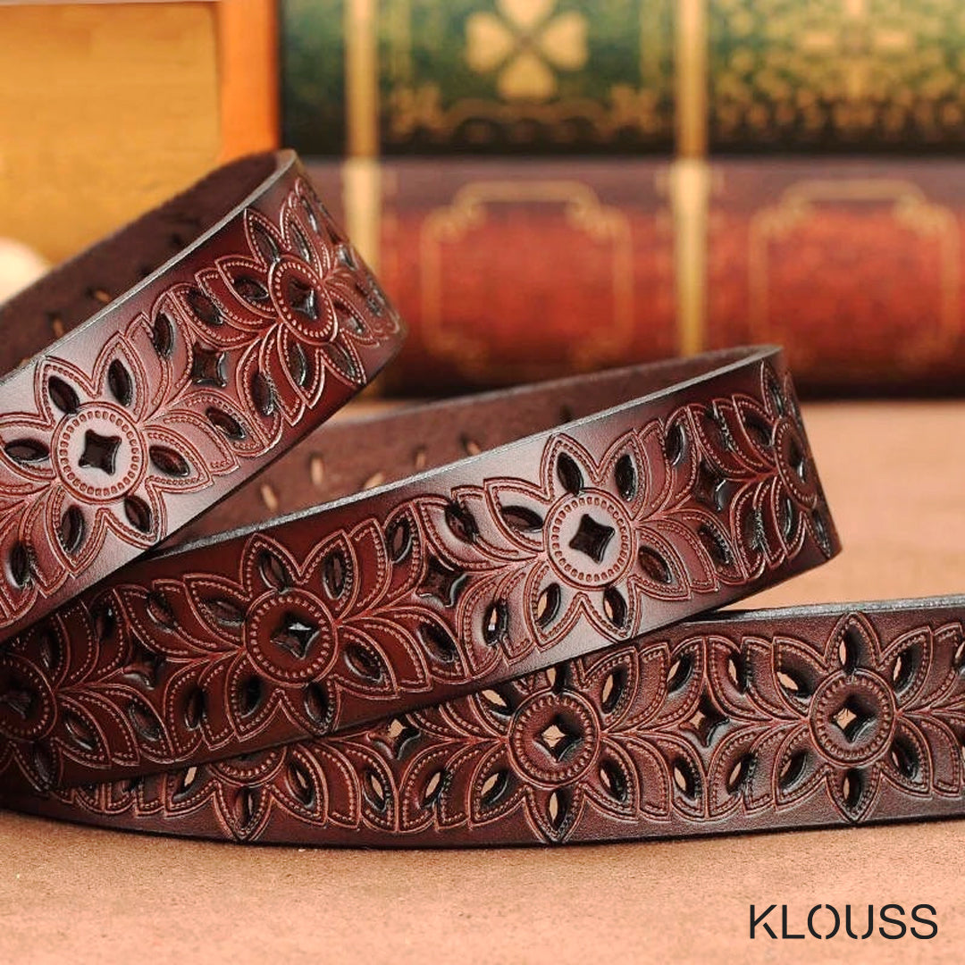 Precioso cinturón para mujer de eco cuero con hebilla y con decoraciones en el cuero. ¡Te va a encantar!