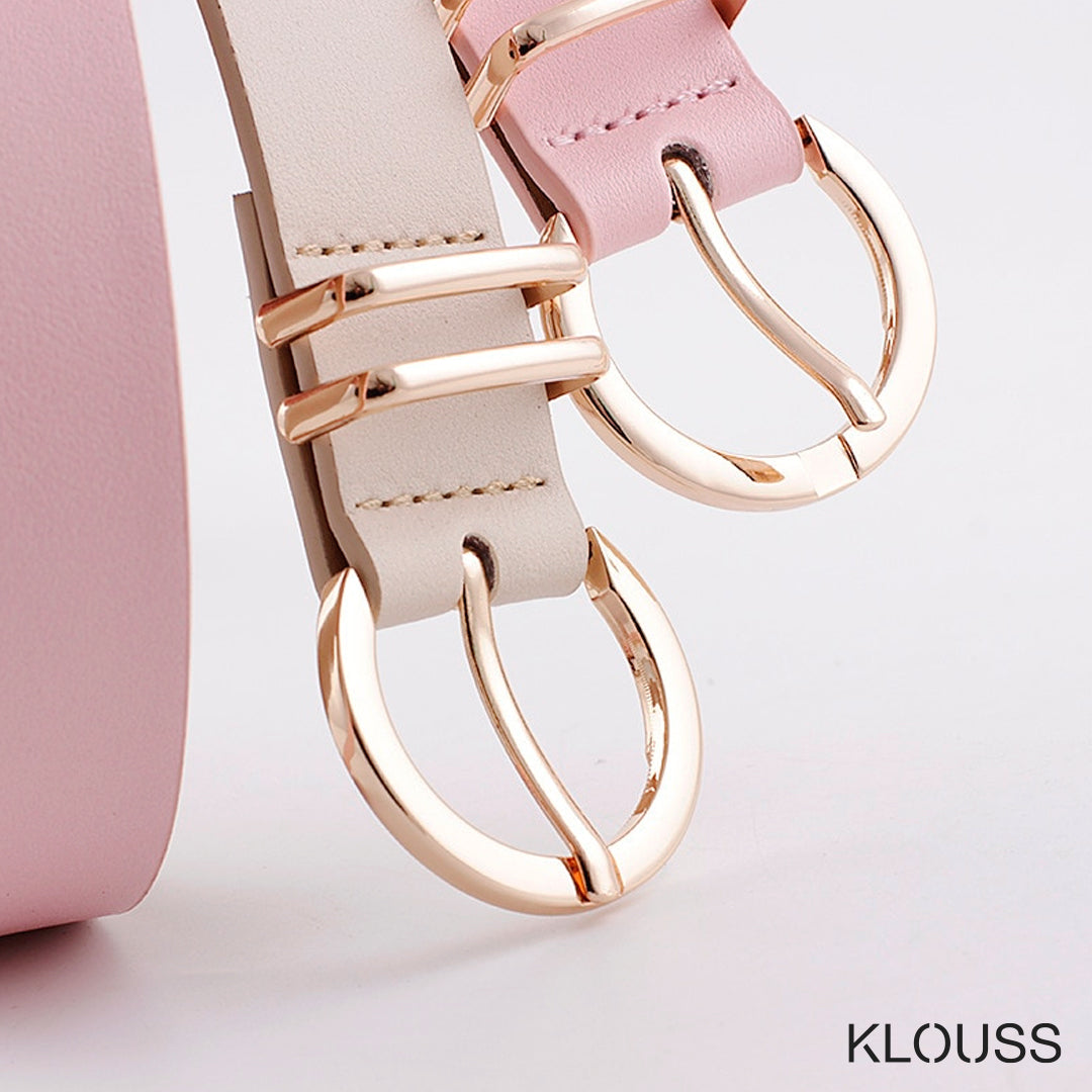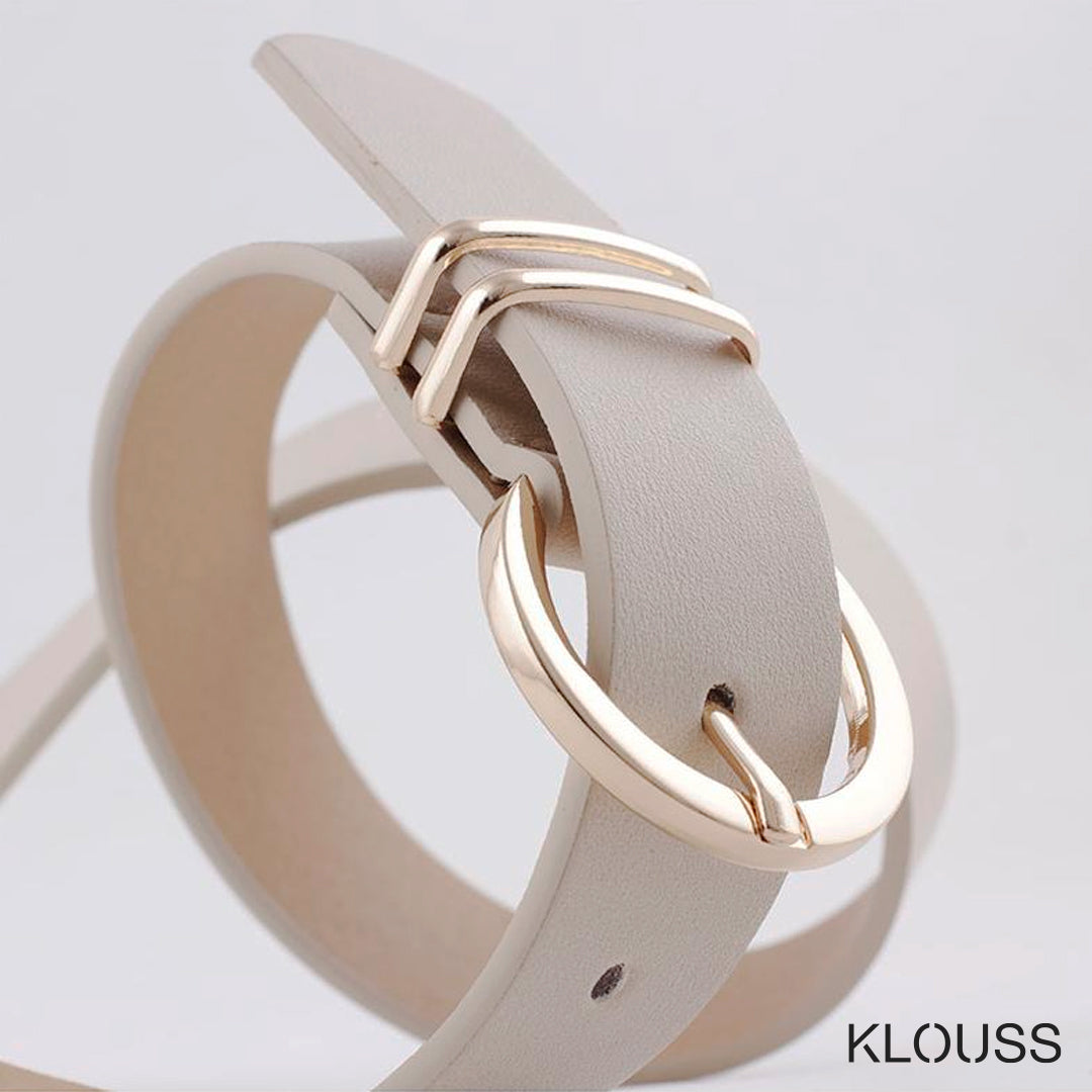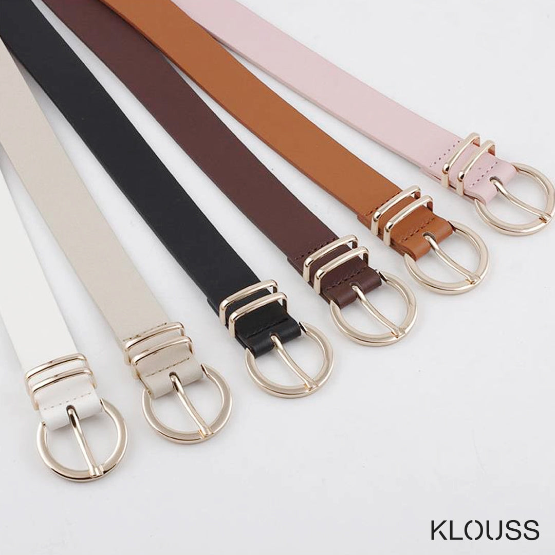 Lindo cinturón de cuero para mujer disponible en 6 colores con hebillas tipo herradura doradas. ¡Te verás regia!