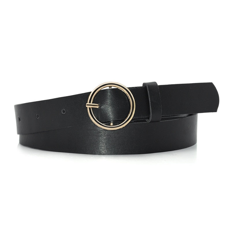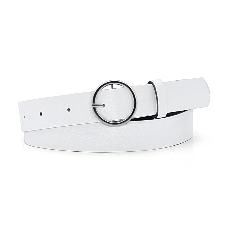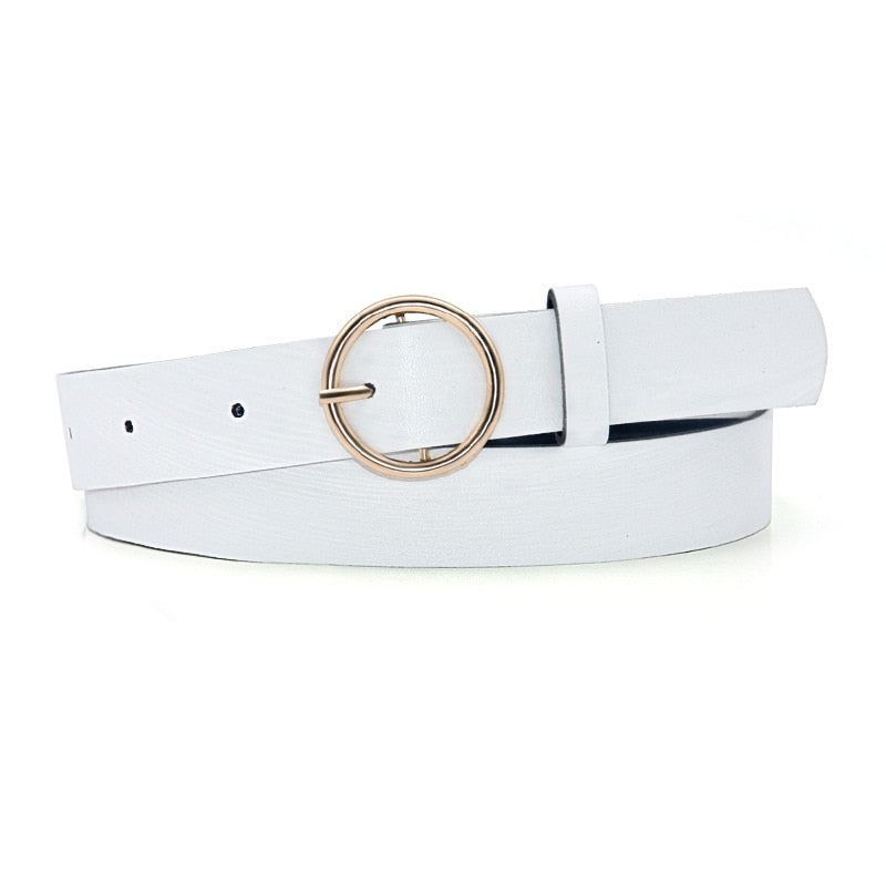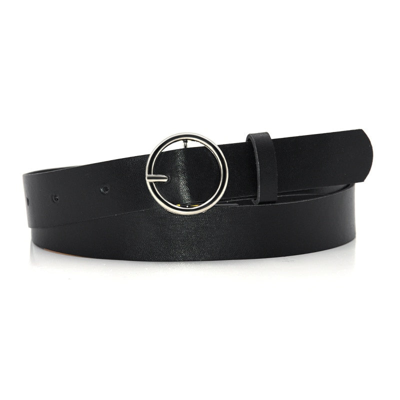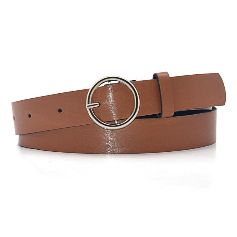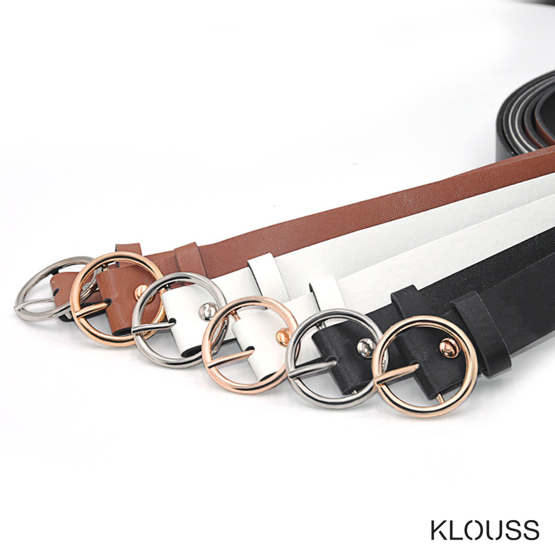 Lindo cinturón para mujer de cuero con hebilla redonda, disponible en color plata o dorado. ¡Te va a encantar!