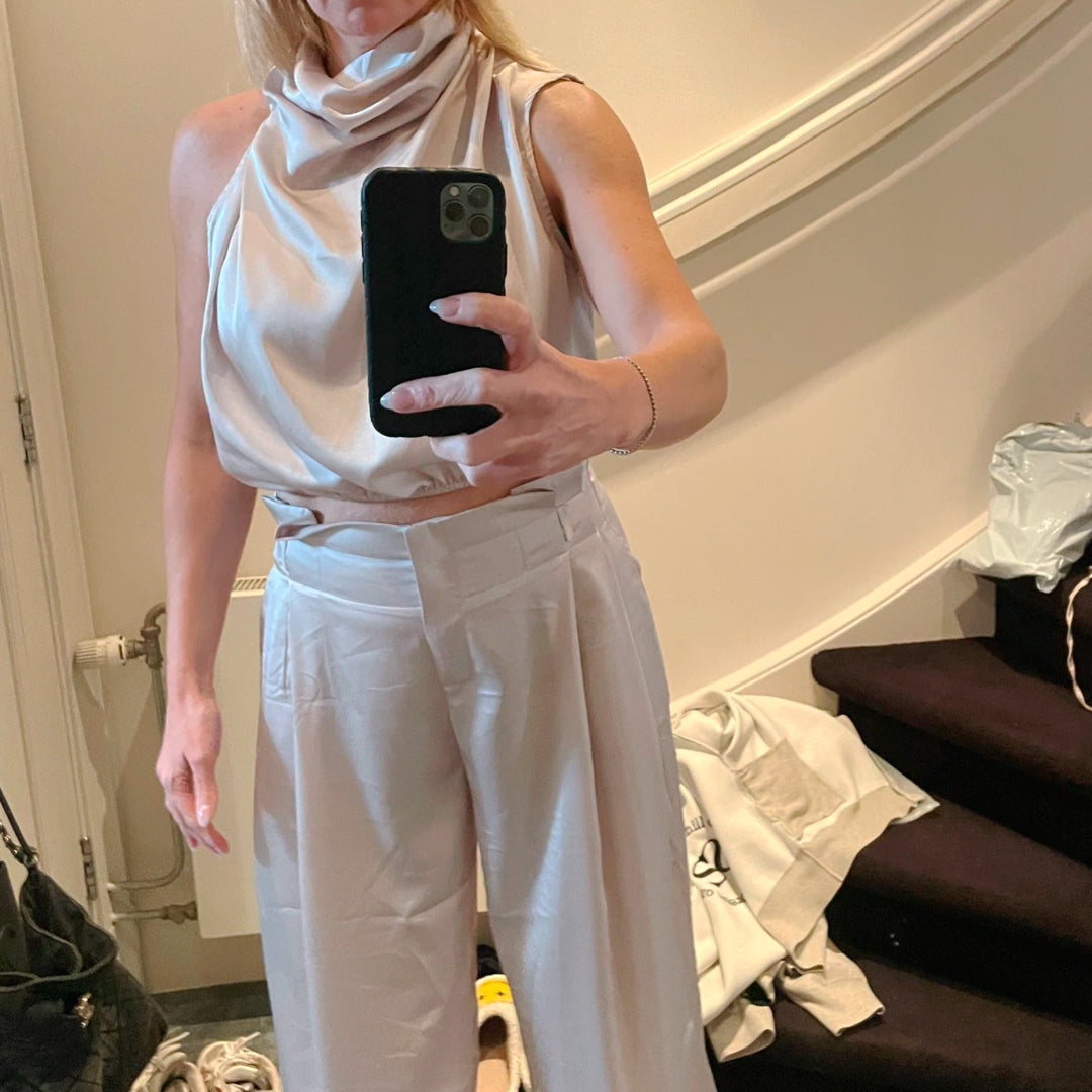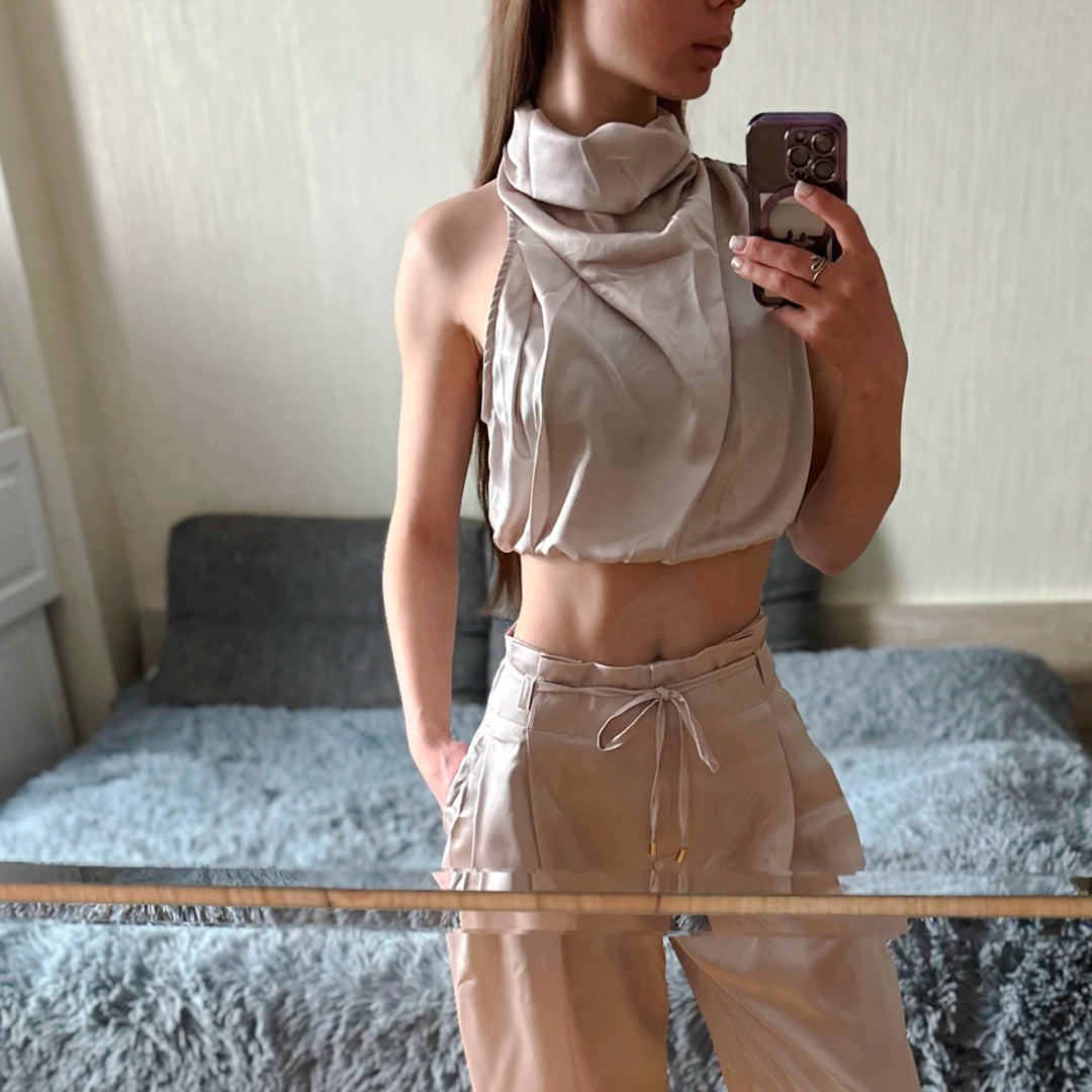 Precioso conjunto de dos piezas plizado para mujer. Diseñado con un top sin mangas y pantalones de corte ancho, super elegante ¡Te vas a ver regia!