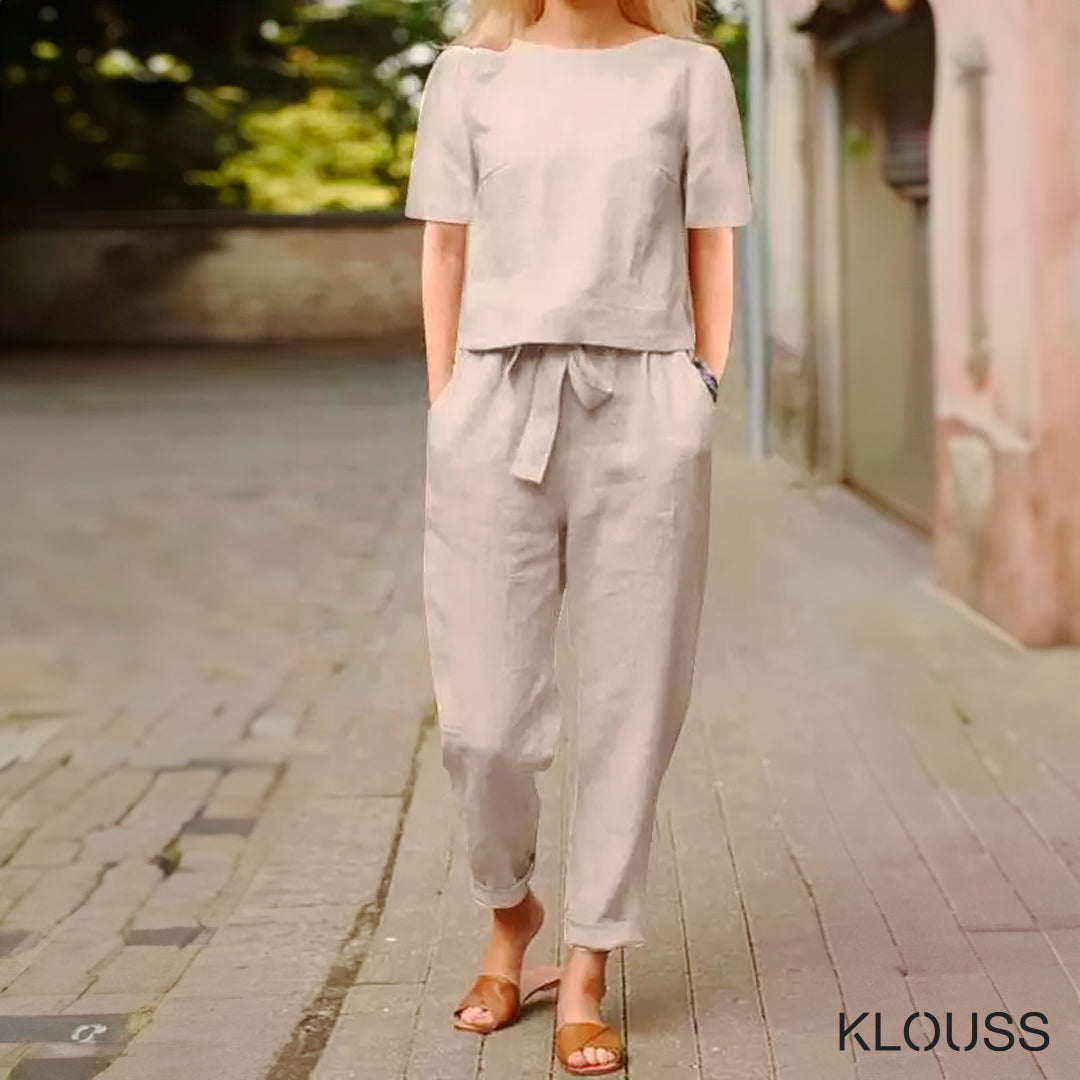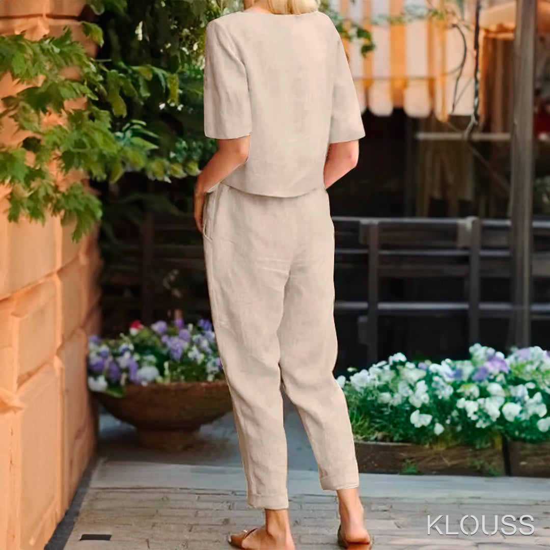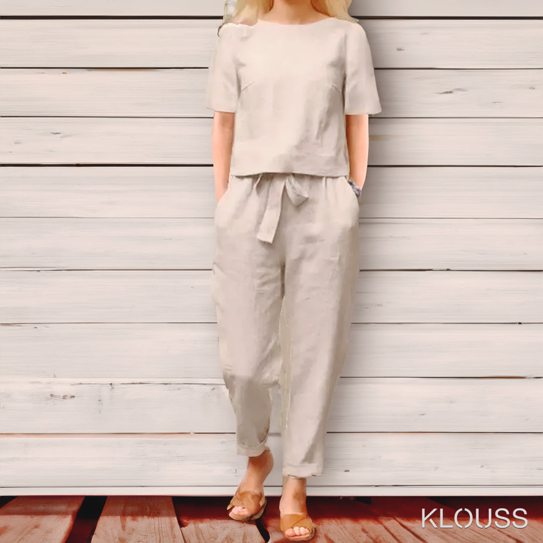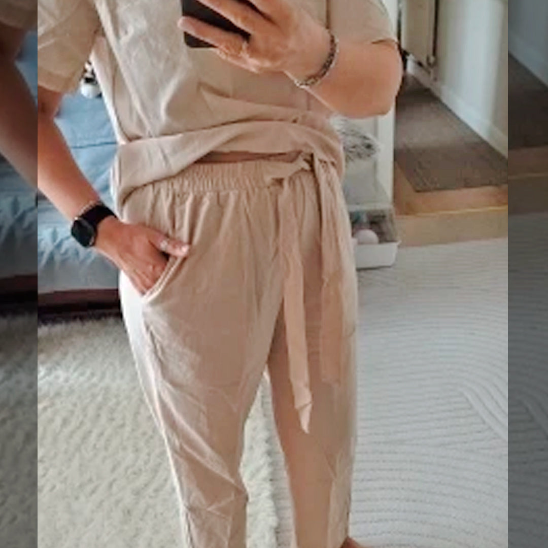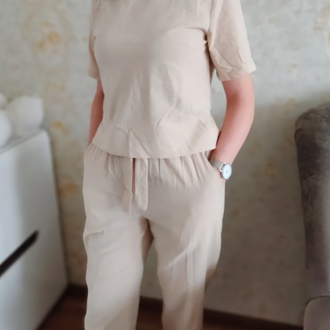 Precioso conjunto de dos piezas para mujer compuesto por una blusa y pantalón holgado. Diseñado con color sólido, cuello redondo, cintura elástica. Disponible en 4 lindos colores ¡Te va a encantar!