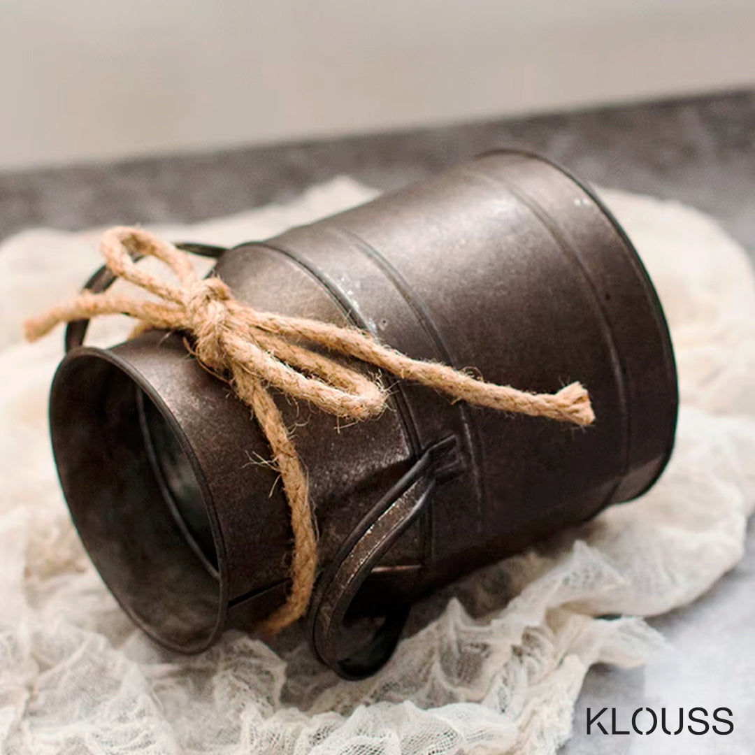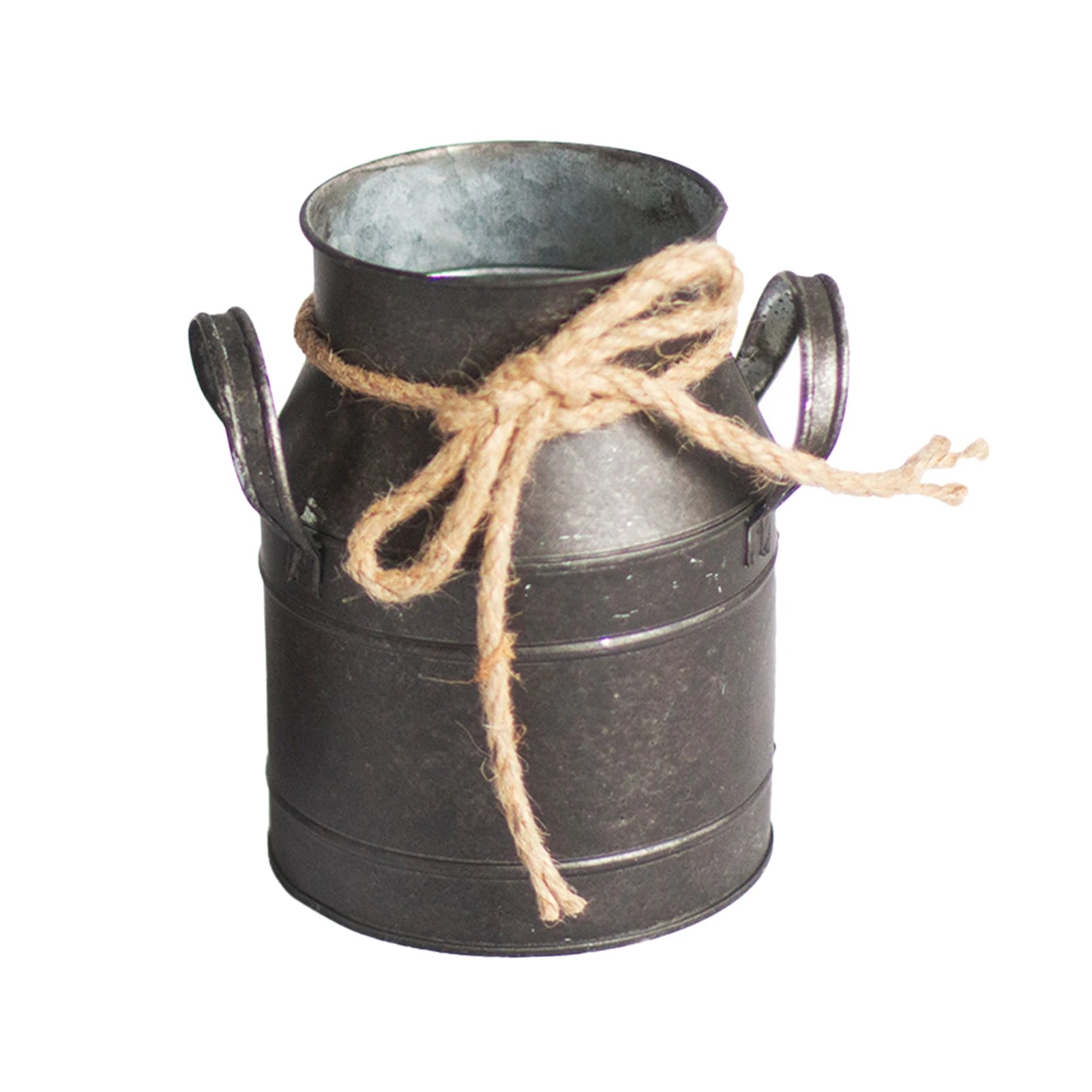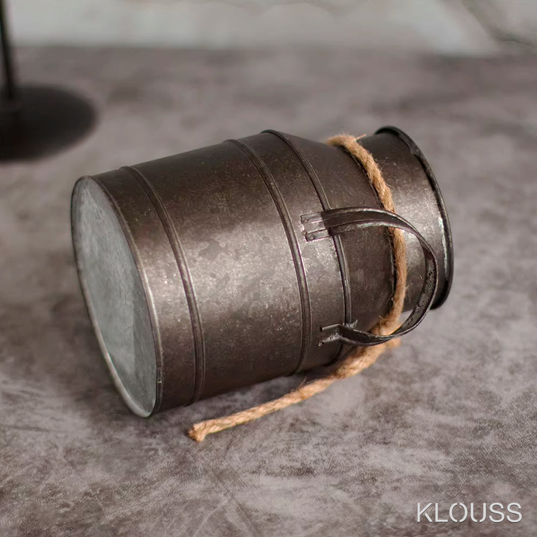 Jarrón de estilo retro de hierro envejecido, ideal como accesorio de decoración, con forma de lata de leche vintage. Ideal como adorno de escritorio, sala de estar o cualquier parte del hogar. Además adornado con una cuerda en el cuello con una cuerda.