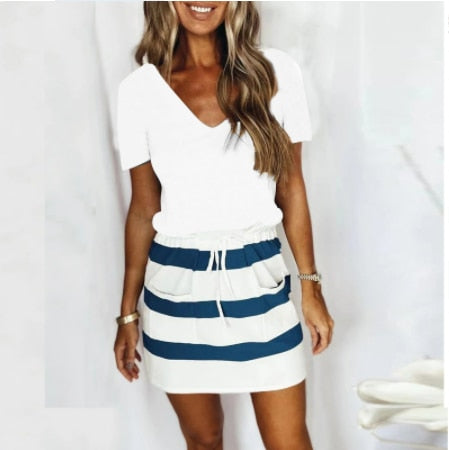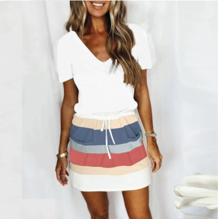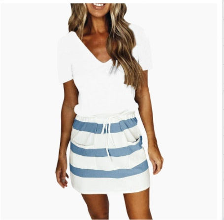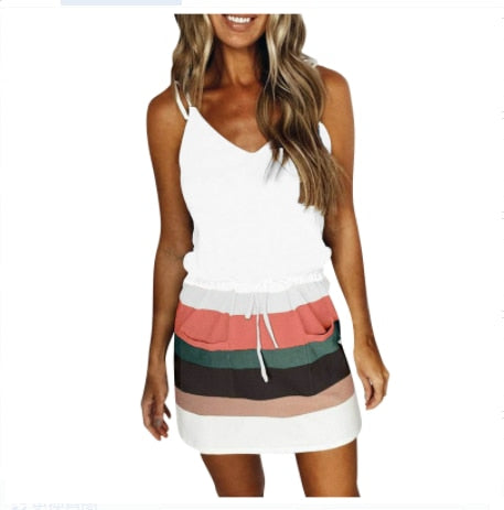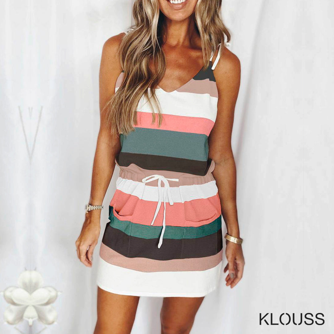 Lindo vestido de verano sin mangas, con cordón, estilo playero y diseñado a rayas.