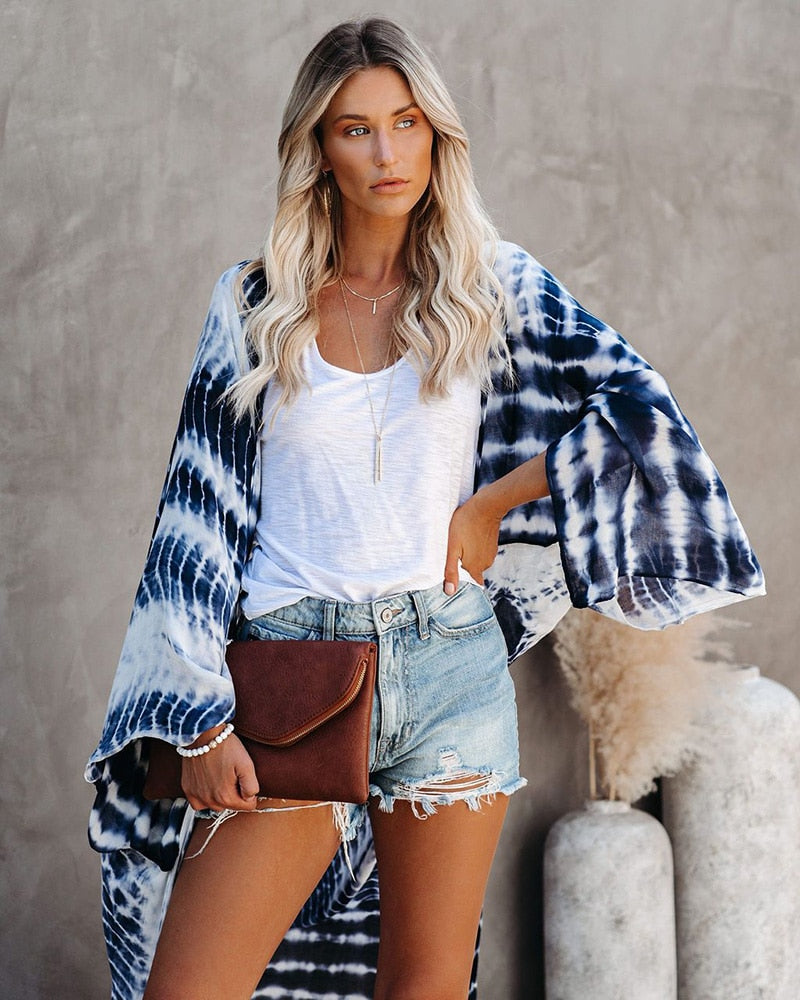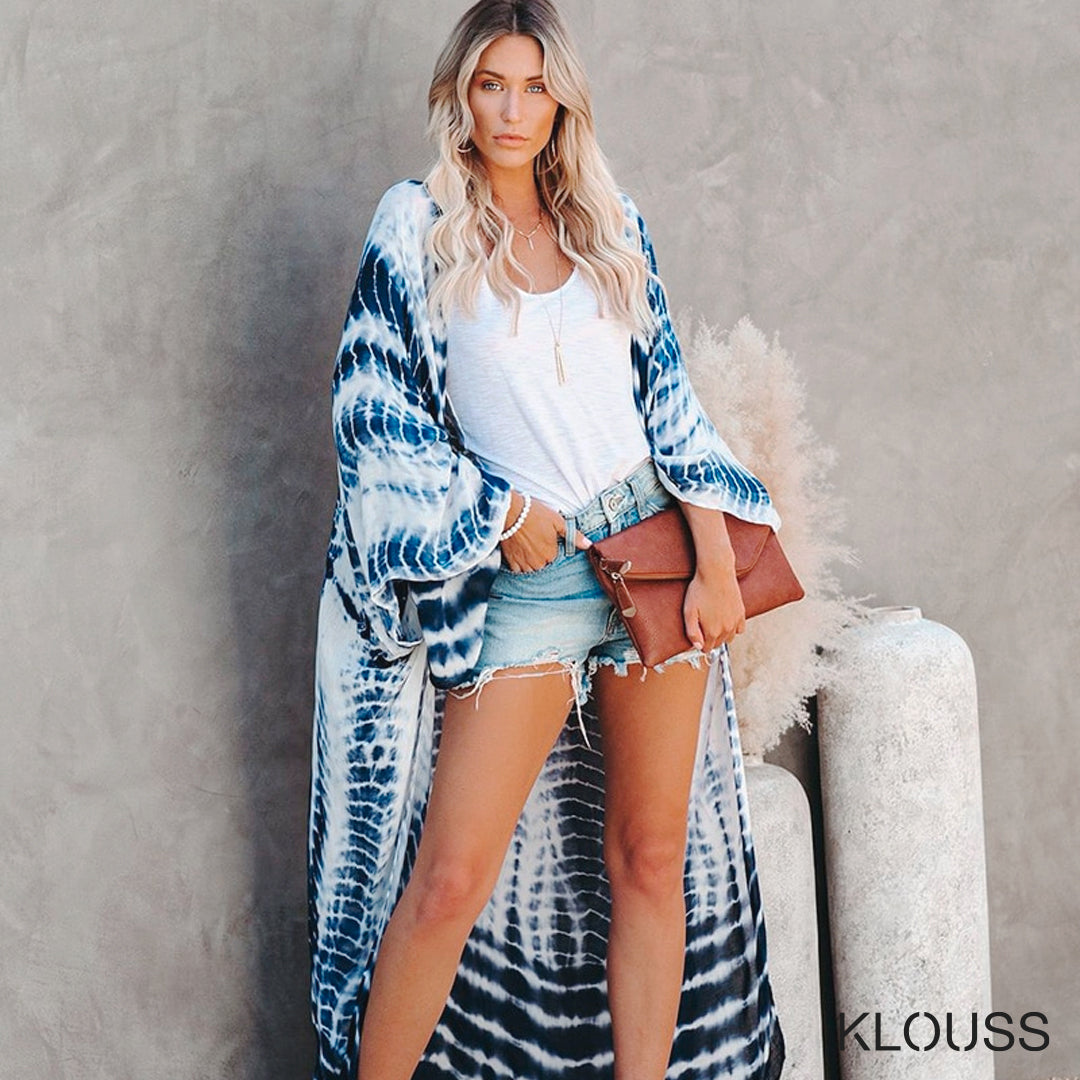 Lindo Kimono Playero en tonos azules y de algodón. Combina muy bien este verano. ¡Te va a encantar!