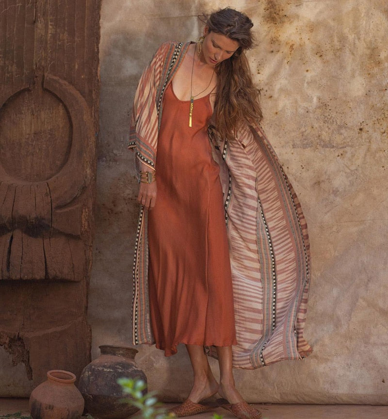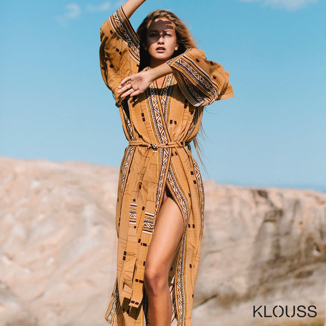 Kimono de algodón playero diseñado en 4 colores diferentes de manga ancha. Ideal para usarlo sobre el traje de baño ¡Te encantará!