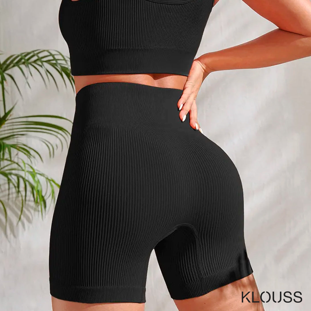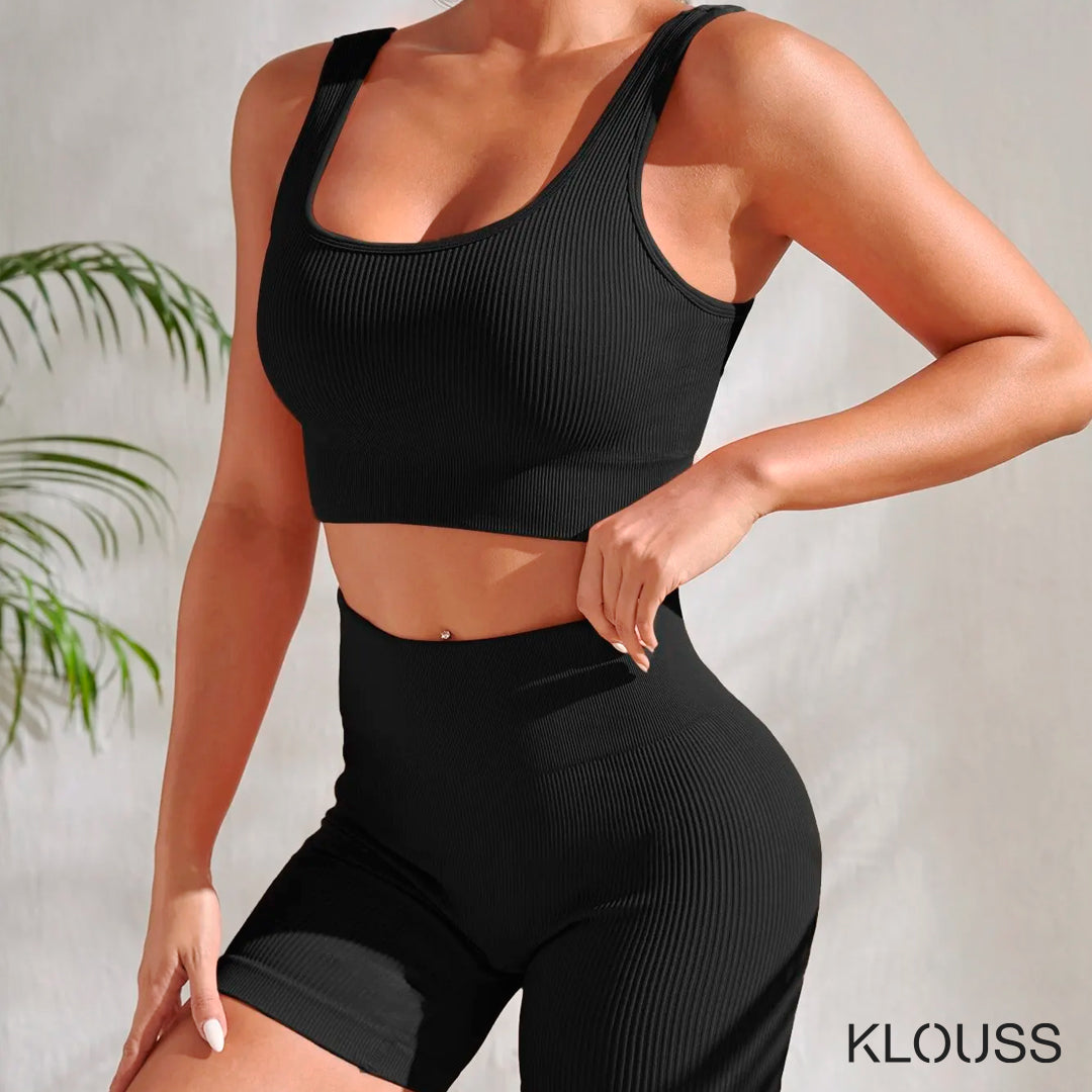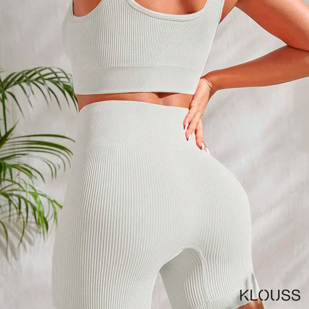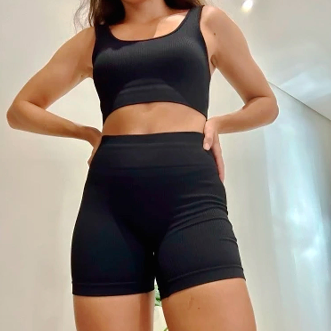 Conjunto deportivo para mujer de dos piezas. Compuesto por un top y un short sin costuras y de secado rápido. Ideal para yoga o el gym ¡Te va a encantar!