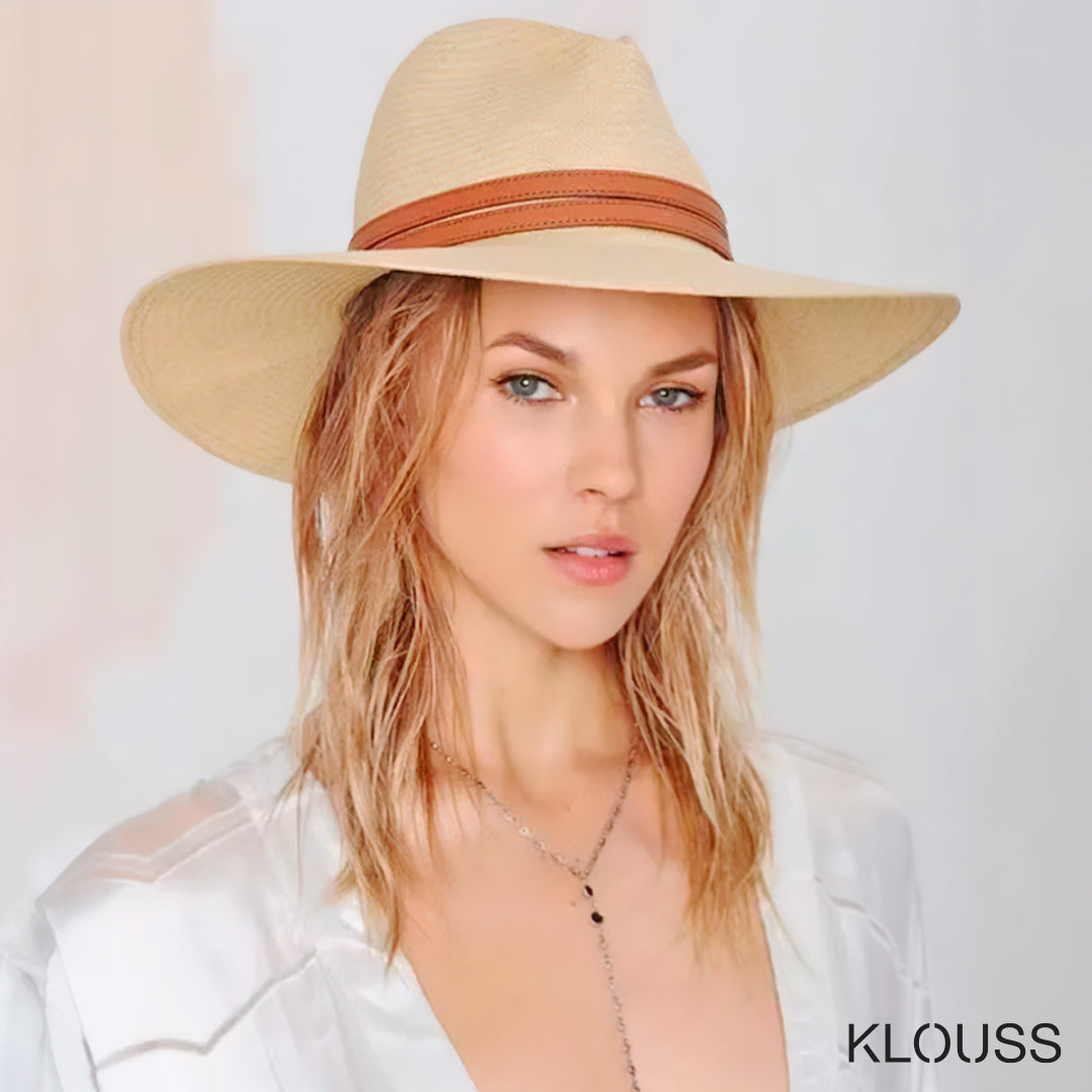 Precioso sombrero de playa para mujer de ala ancha disponible con decoración de tela o eco cuero. ¡Te vas a ver regia!
