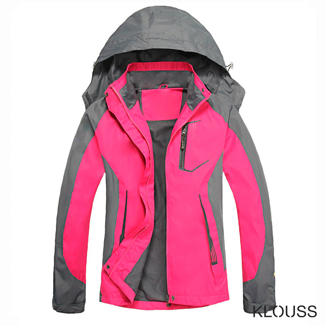 Espectacular chaqueta deportiva outdoor para mujer ideal para senderismo, escalar y hacer deportes al aire libre. Equipada con capucha removible, velcro y cierres metálicos para mantener la temperatura. Además confeccionada con tela resistente al agua y respirable. ¡Disponible en lindos y llamativos colores con los que te verás regia!