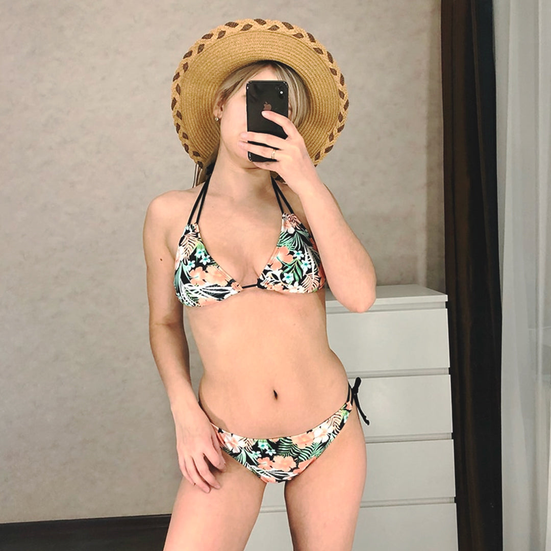 Lindo Bikini de 2 piezas con diseños estampados tipo verano y primavera. Diseñado con doble stripe en el top para mejor soporte push-up. ¡Te vas a ver estupenda!