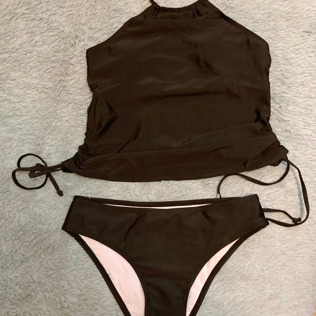 Precioso conjunto de 2 piezas tipo Tankini, con cordones para mujer. Diseñado con cuello halter para mayor soporte. ¡Te vas a ver regia!