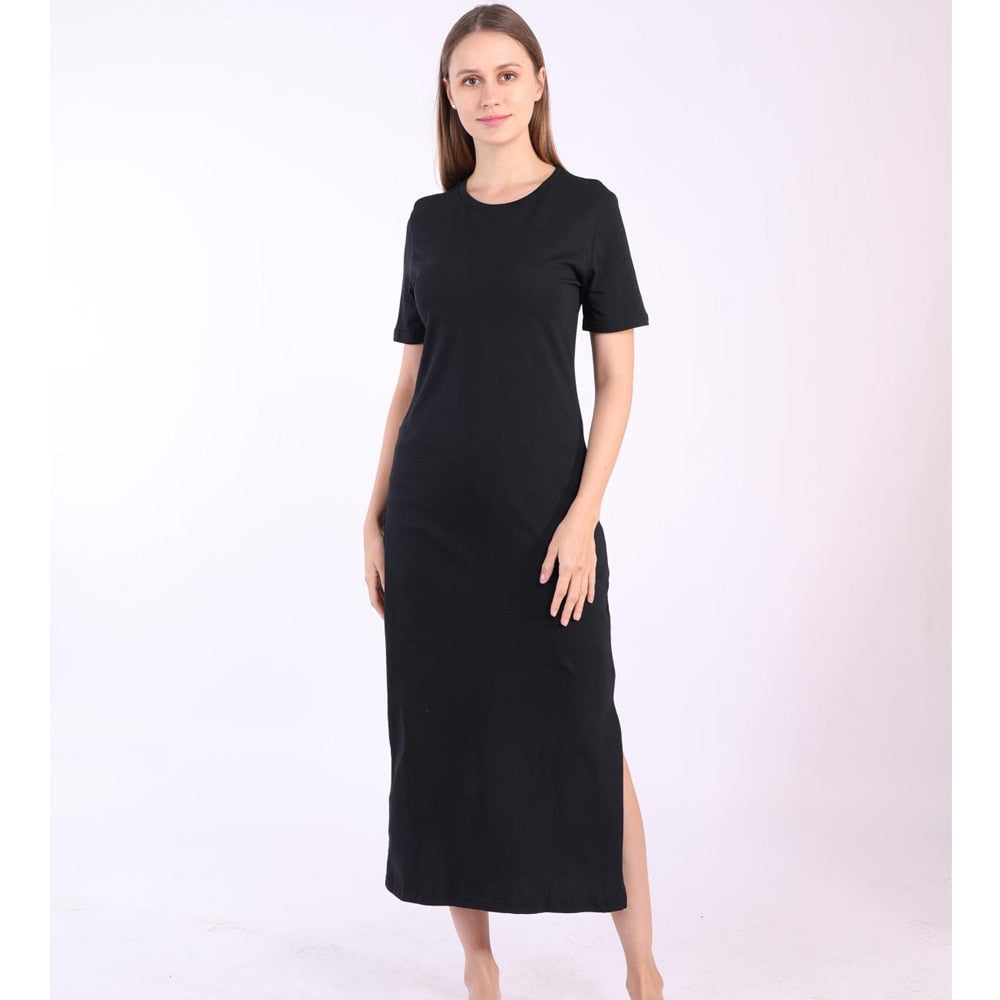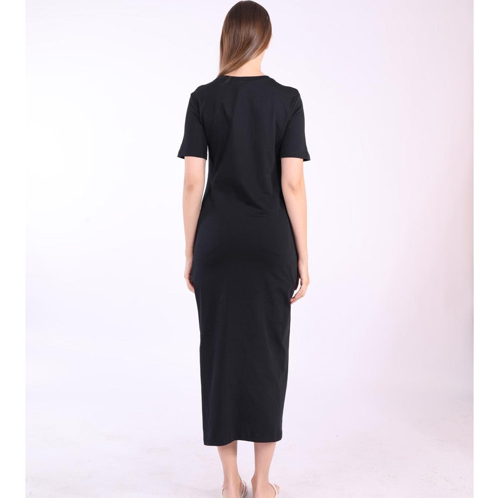 Vestido largo playero de manga corta de algodón. Ideal como salida de baño o para ir a la playa y usar con zapatillas ¡Muy taquilla!