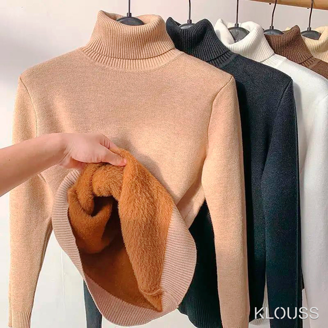 Precioso sweater grueso para mujer de cuello de tortuga y manga larga.