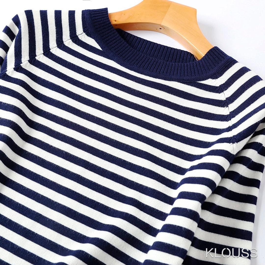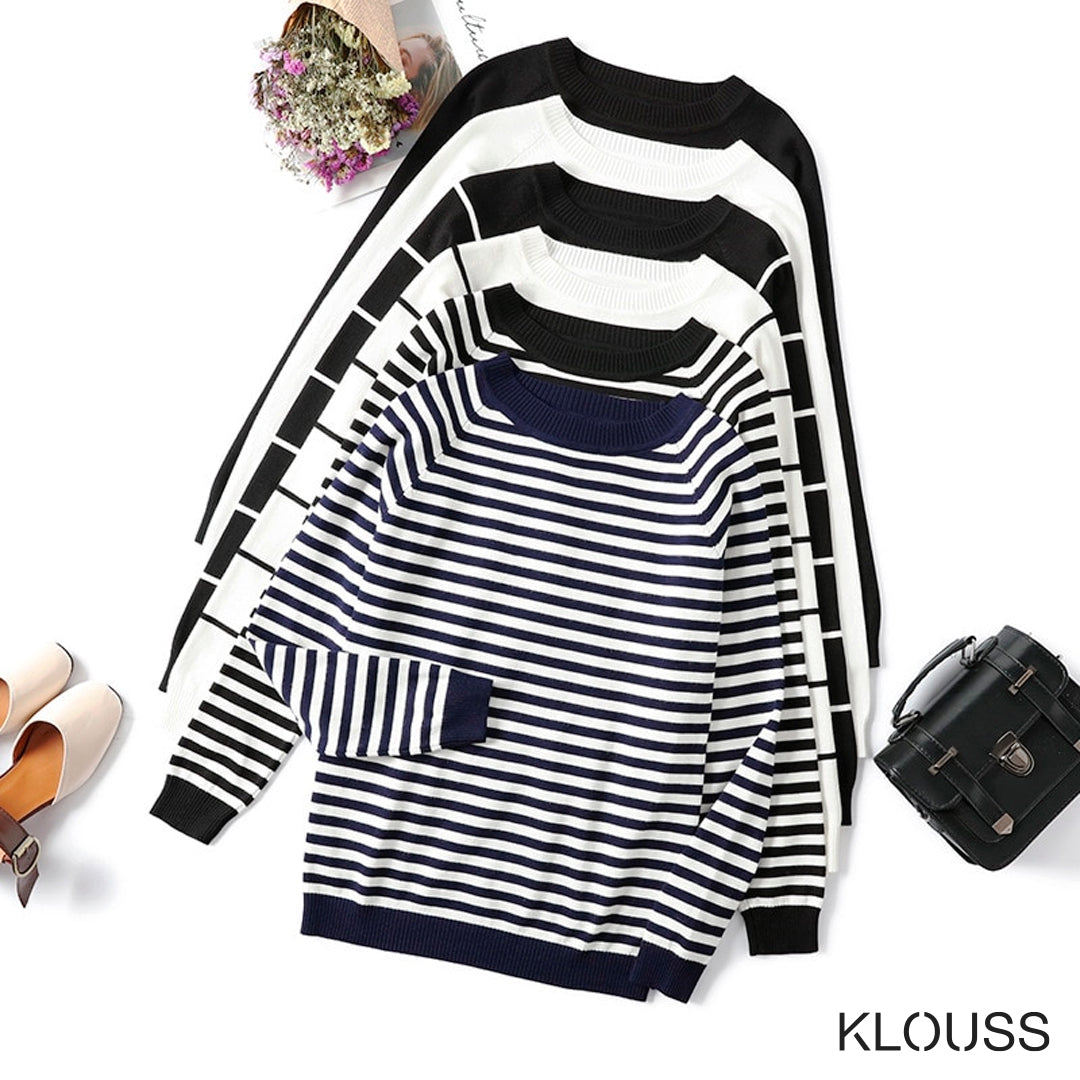 Sweater para mujer de manga larga de punto de cuello redondo. Disponible en colores planos y con rayas de tela fina. ¡Te va a encantar!