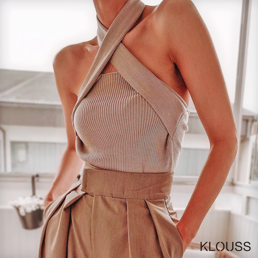 Lindo Top de cuello cruzado halter para mujer ajustado sin hombros y sin mangas. ¡Te vas a ver estupenda!