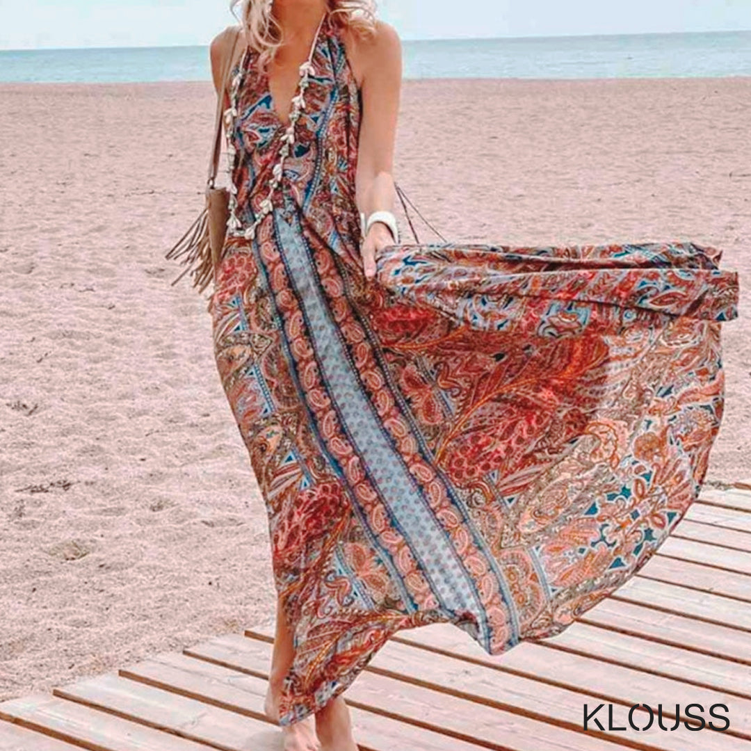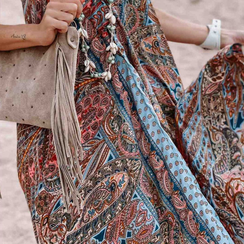 Vestido playero tipo salida de baño, largo, estampado, sin mangas y de estilo vintage ¡muy taquillero!