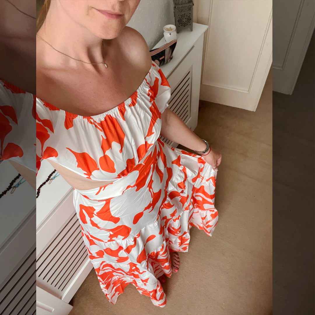 Lindo vestido de verano para mujer. Diseñado de encaje con hombros descubierto y a media manga. Disponibles en colores alegres en estampado. ¡Te va a encantar!