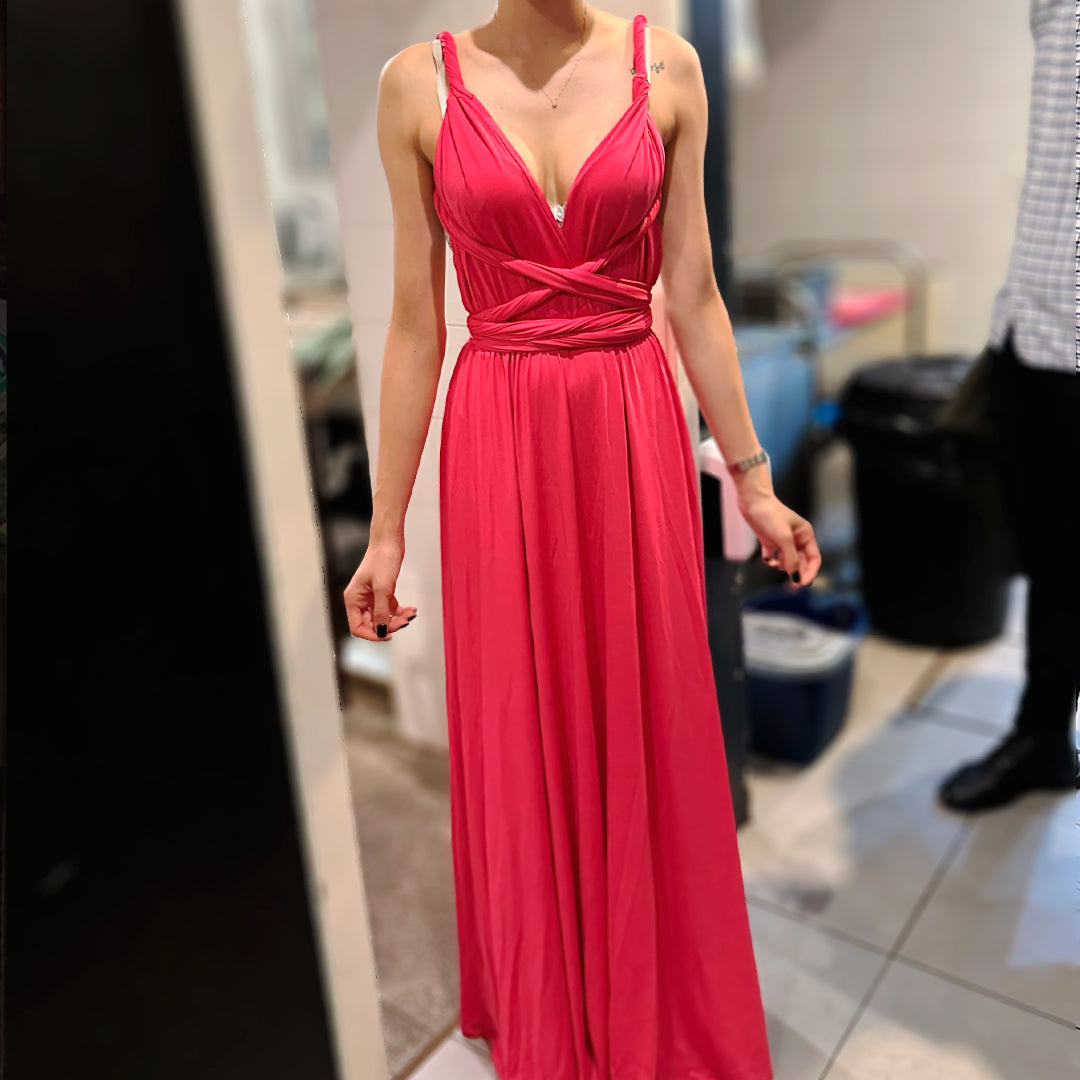 Precioso vestido largo convertible para mujer, muy elegante multiposición , con tirantes adaptables según tu estilo. Ideal para fiestas, eventos, graduaciones y matrimonios. ¡Te vas a ver regia!