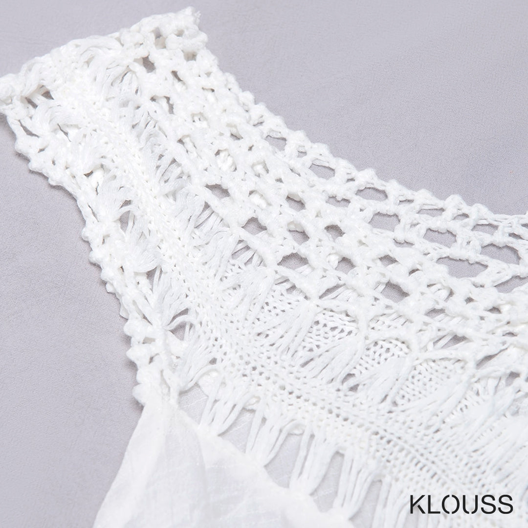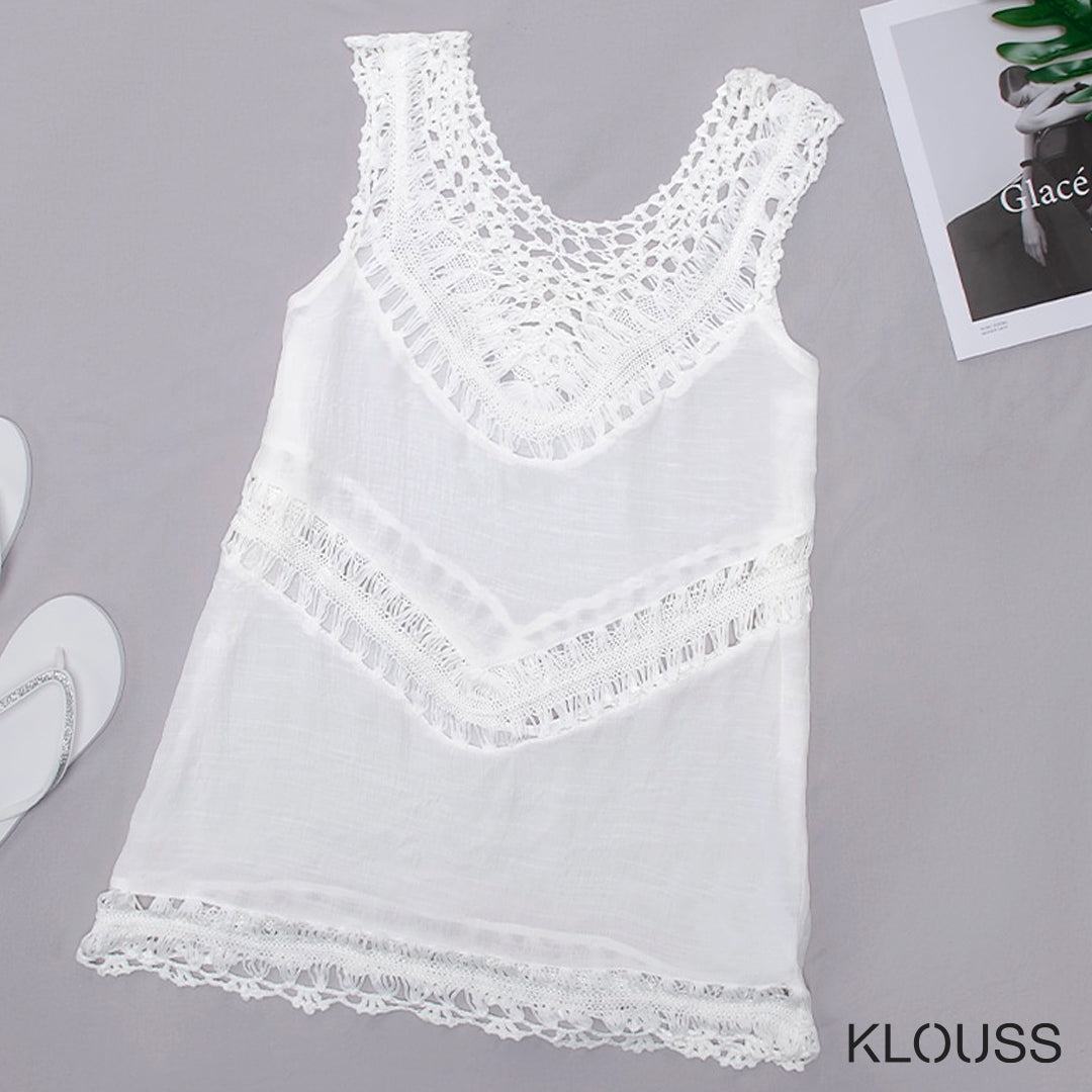 Precioso vestido tipo salida de baño para mujer de color blanco sin mangas, ideal para usar sobre el bikini o traje de baño. ¡Te vas a ver regia!