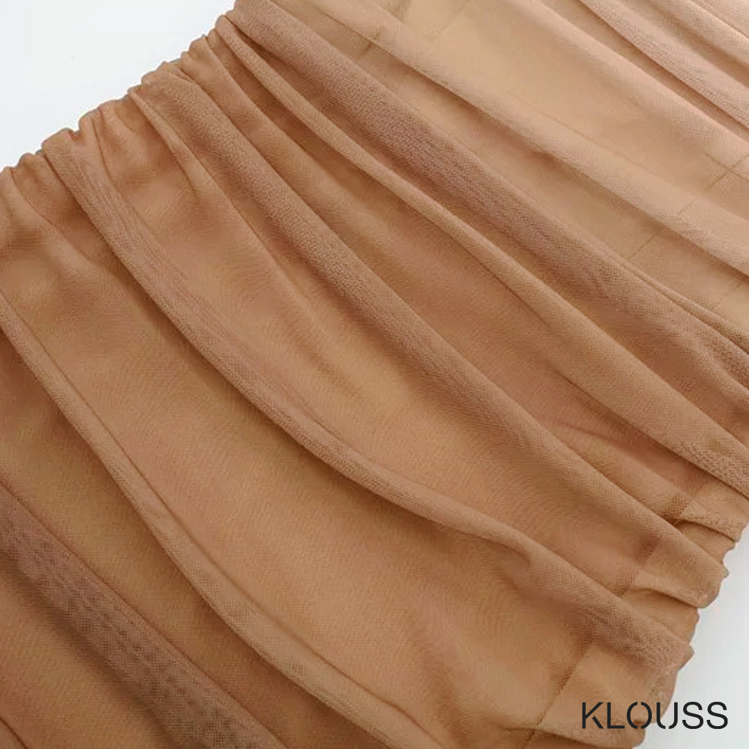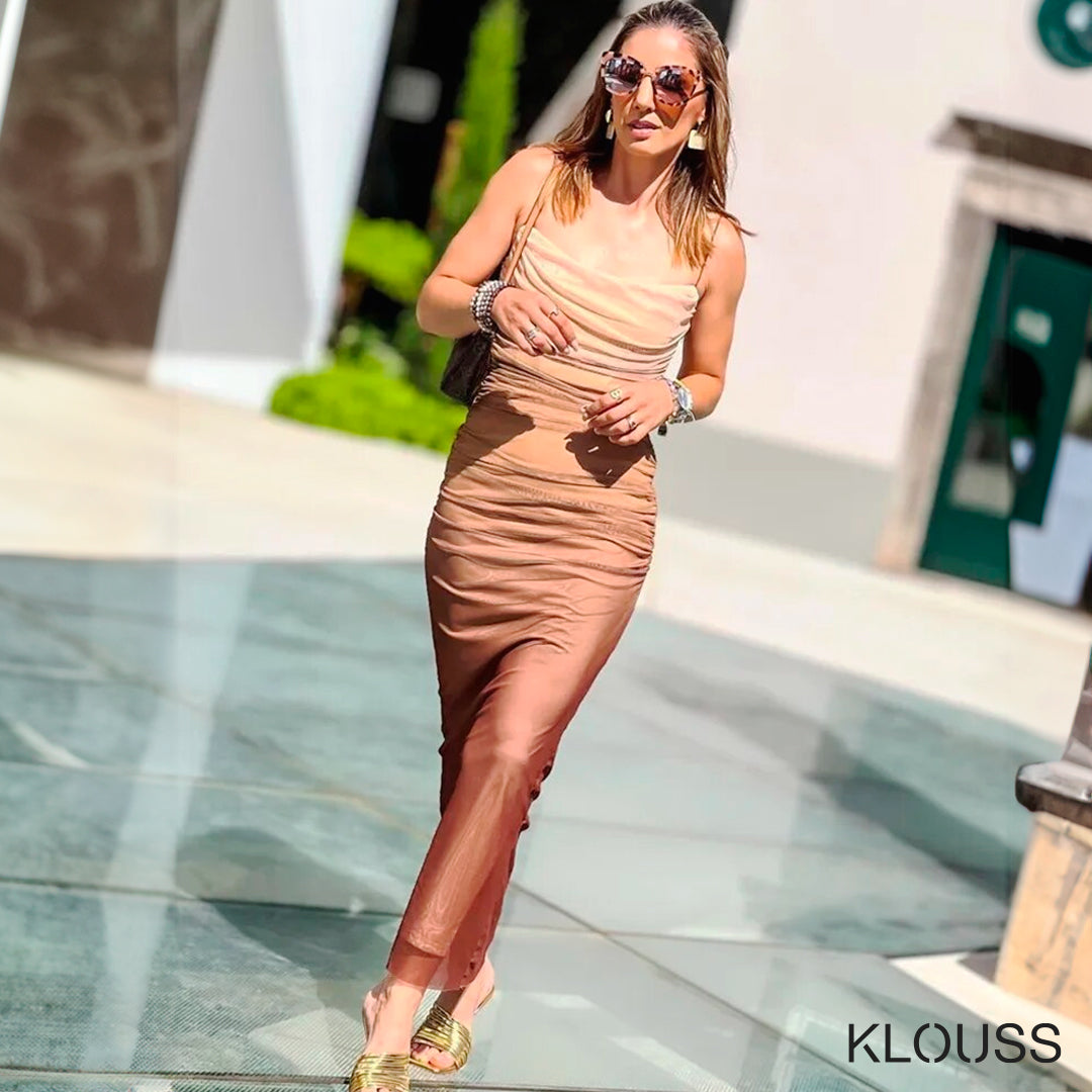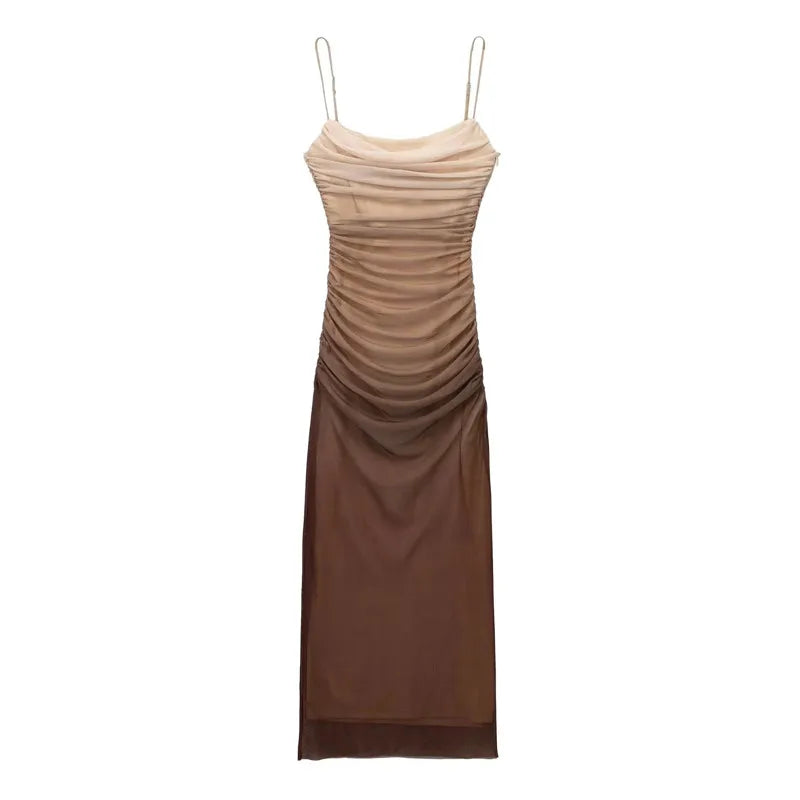 Elegante vestido de fiesta para mujer ajustado sin mangas de color tonos cafe. Ideal para fiestas y eventos de verano. ¡Te va a encantar!