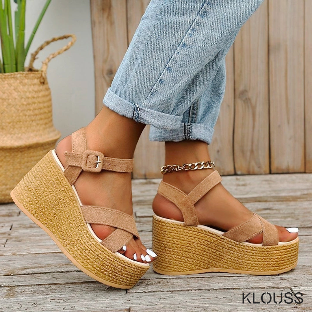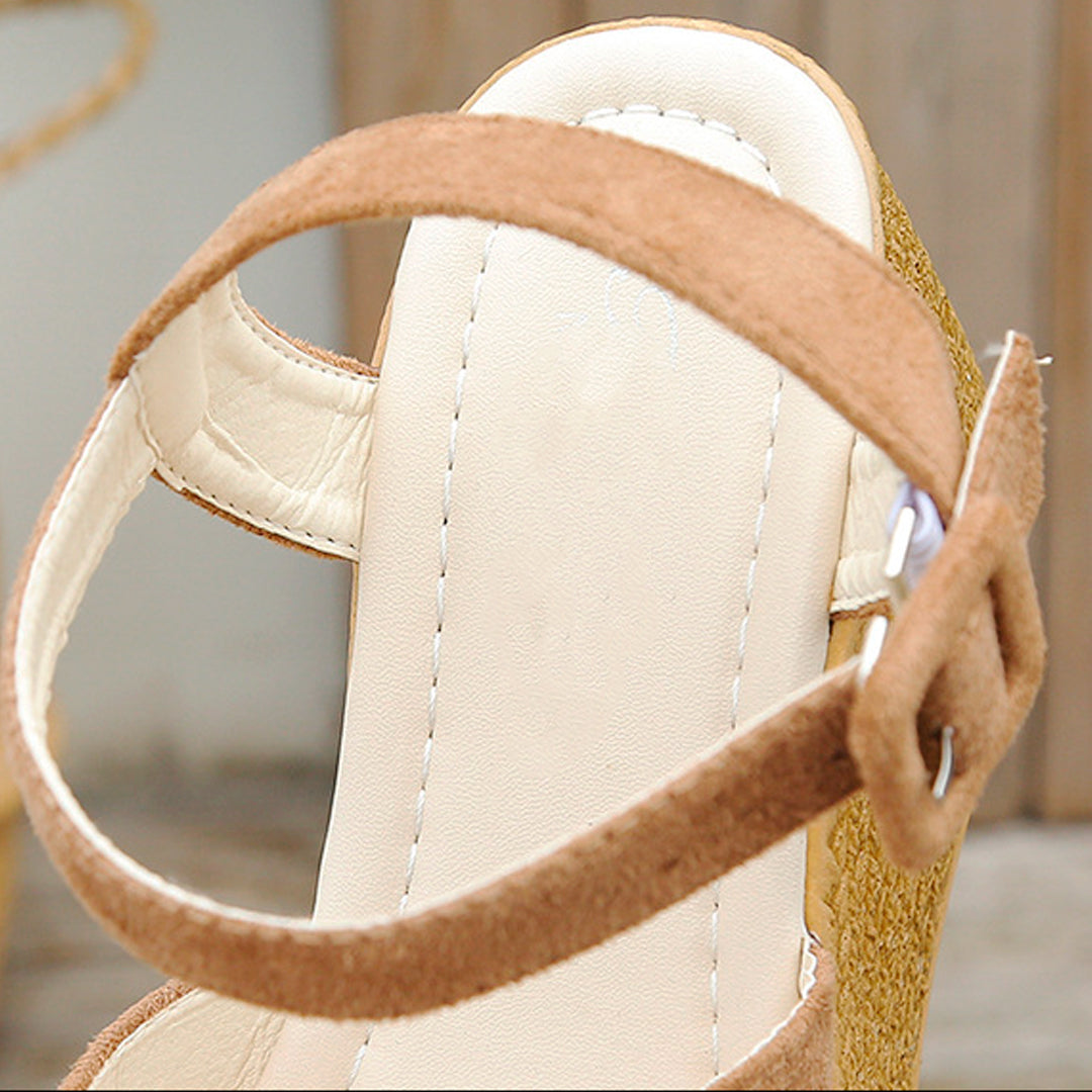 Sandalia para mujer para primavera o verano, con suela antideslizante y amarras de cuero con hebilla.
