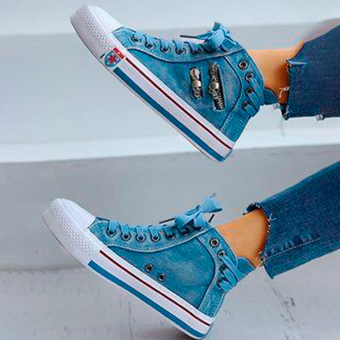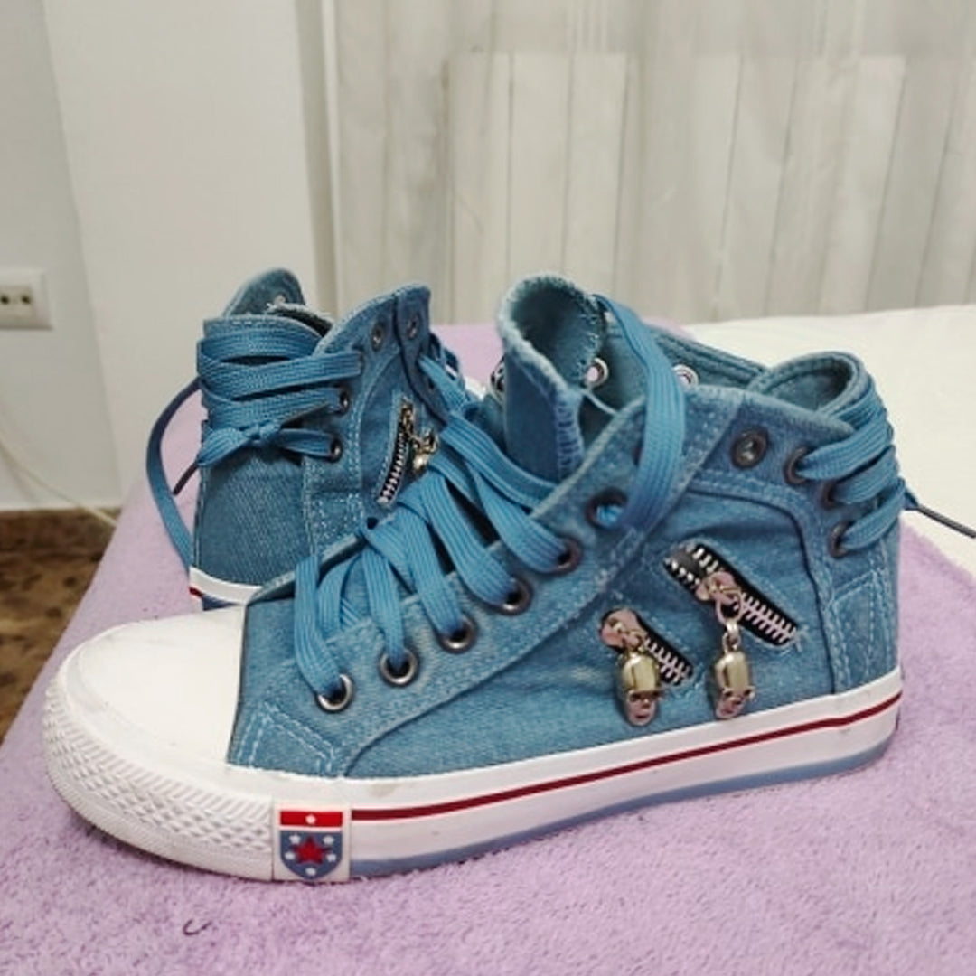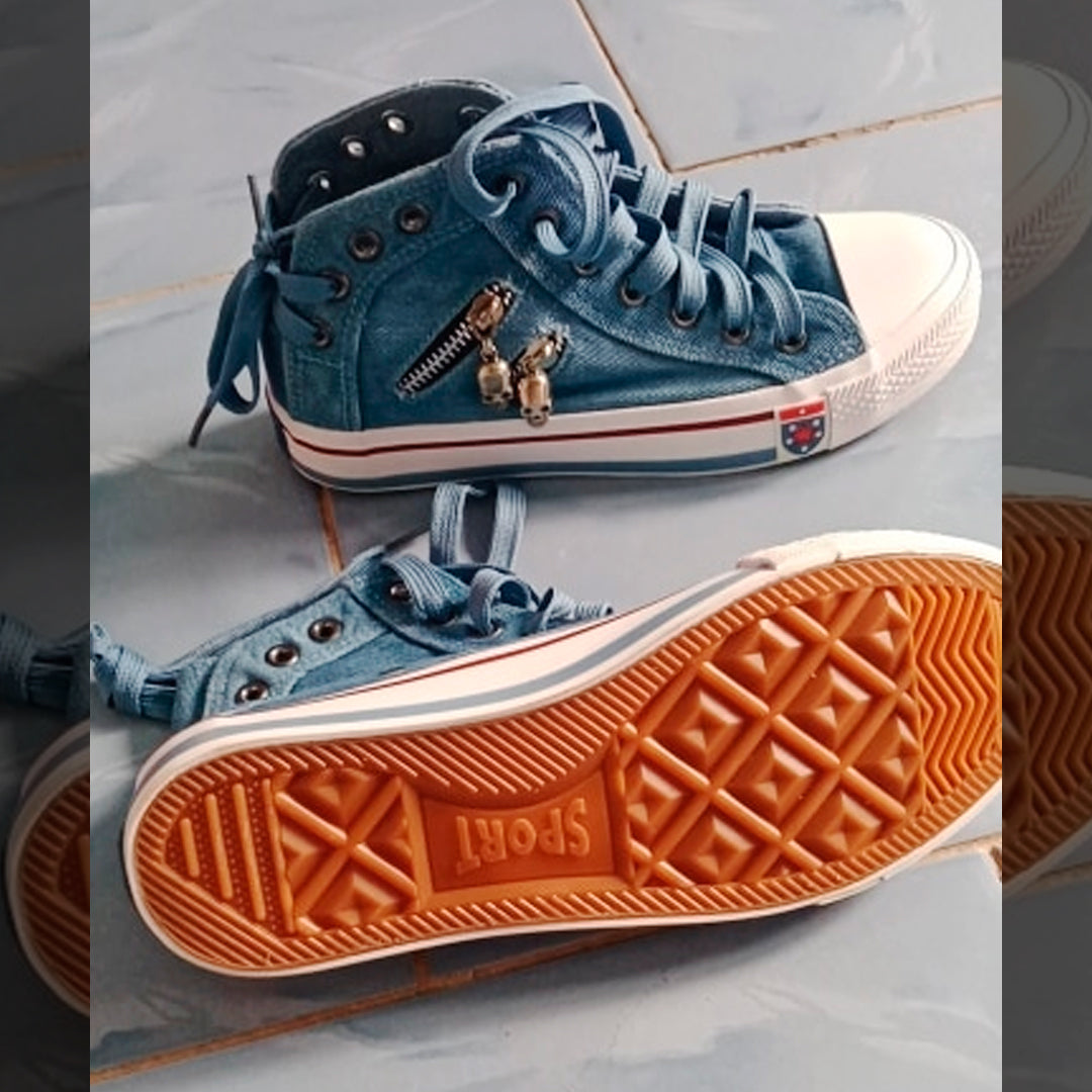 Zapatillas de lona tipo mezclilla las cuales simulan un pantalón de jean ¡Muy taquilla!