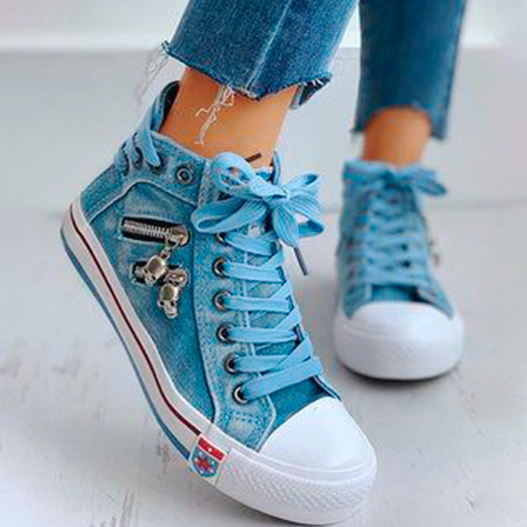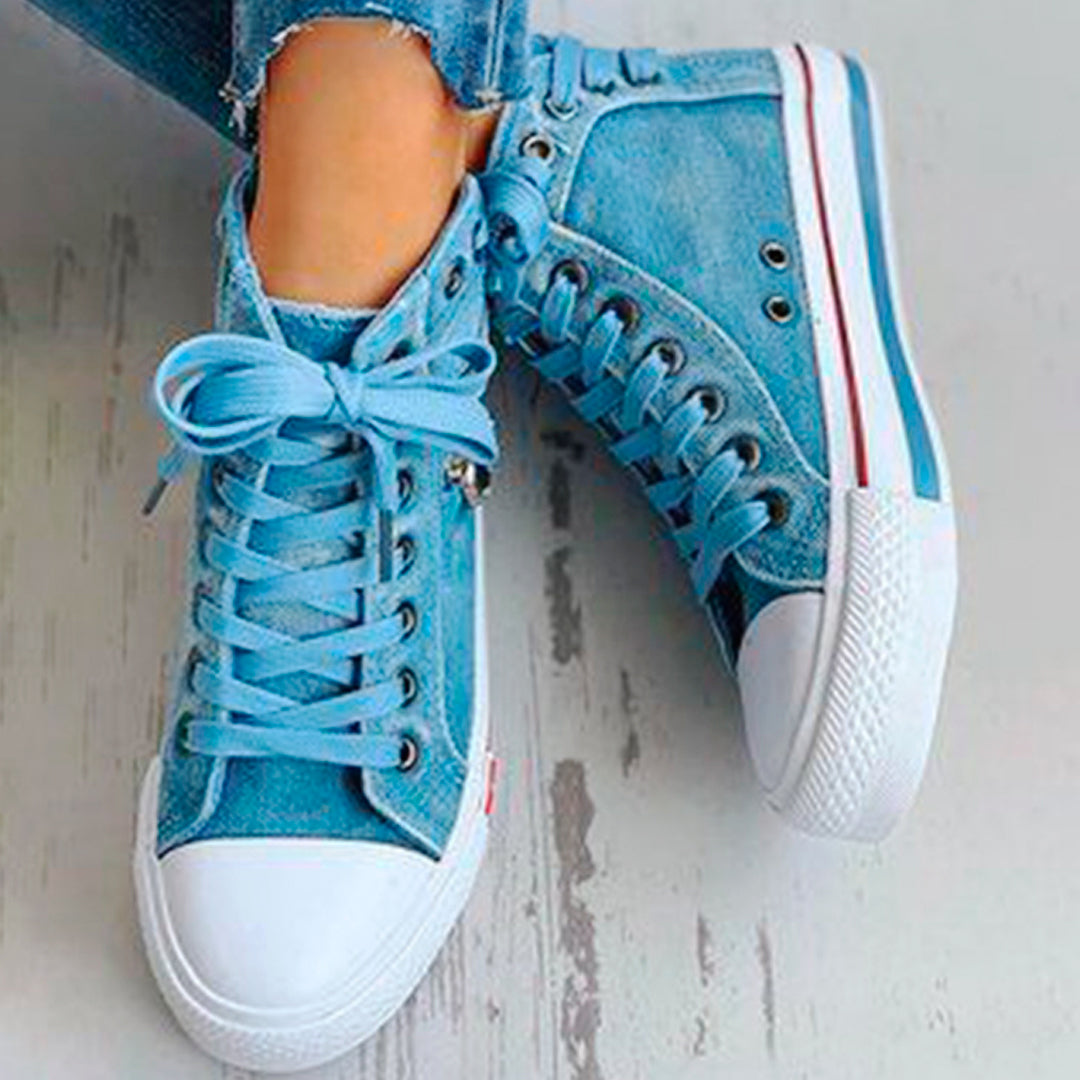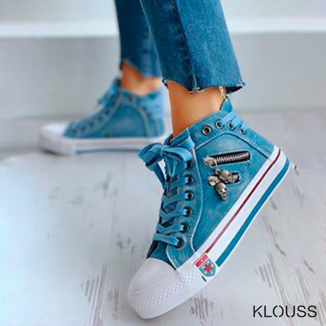 Zapatillas de lona tipo mezclilla las cuales simulan un pantalón de jean ¡Muy taquilla!