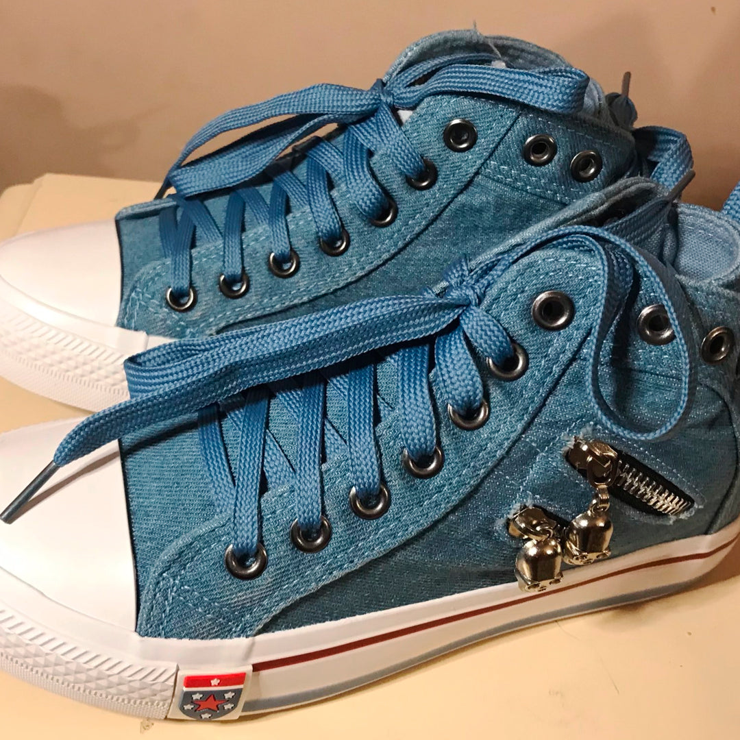 Zapatillas decoradas con cierres y dijes de calavera ¡Muy lindas!