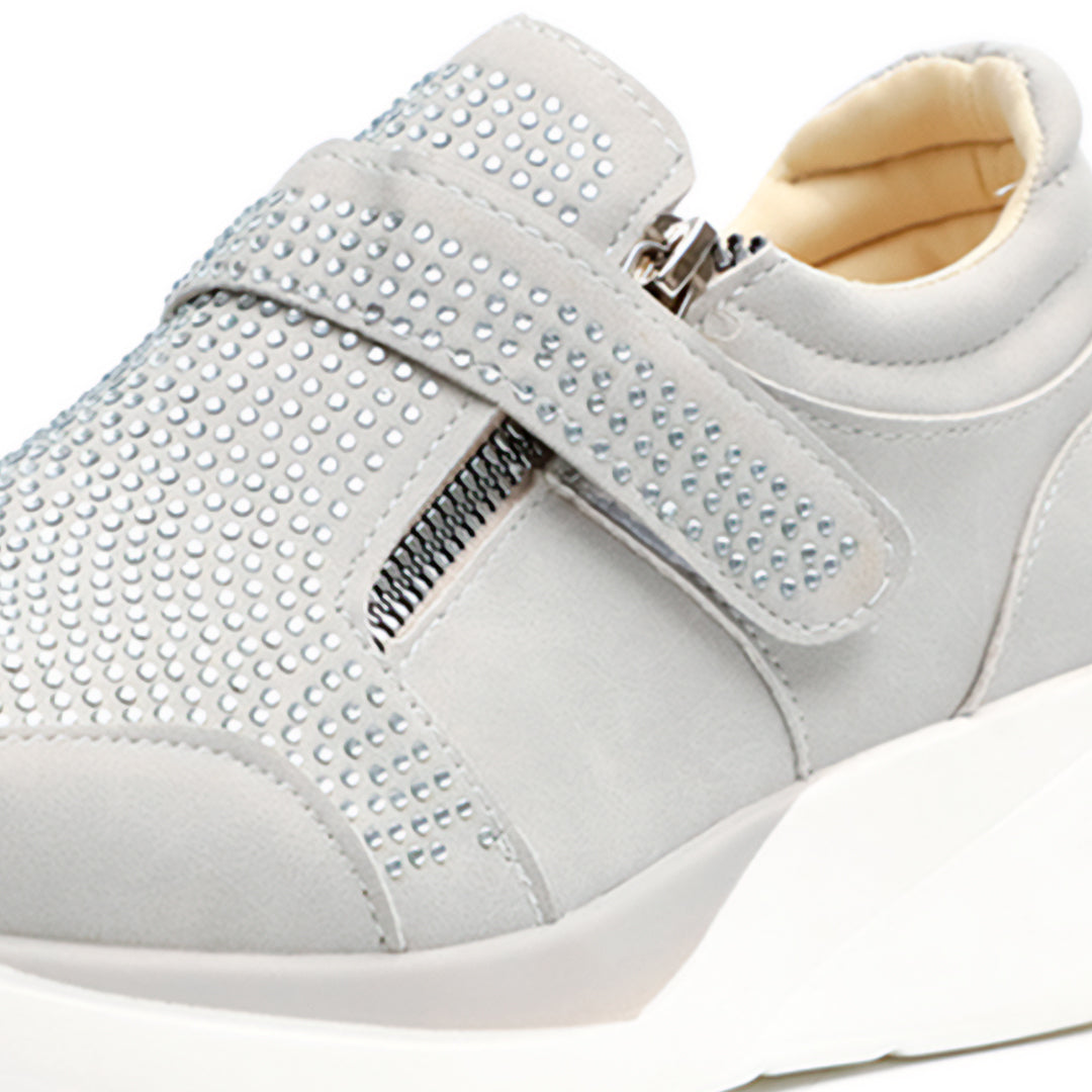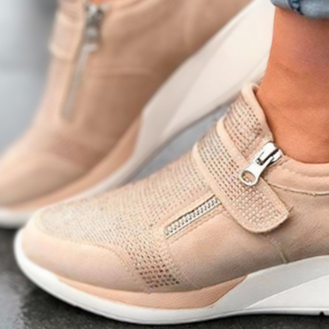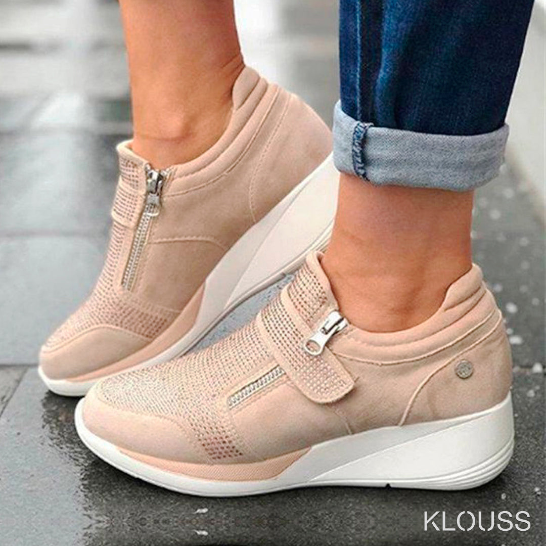 Preciosa zapatilla para mujer de lona y de plataforma, diseñadas sin cordones sino con un cierre al costado y velcro para mayor comodidad. ¡Te va a encantar!