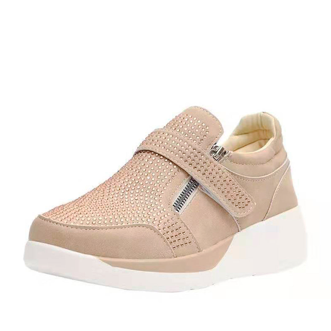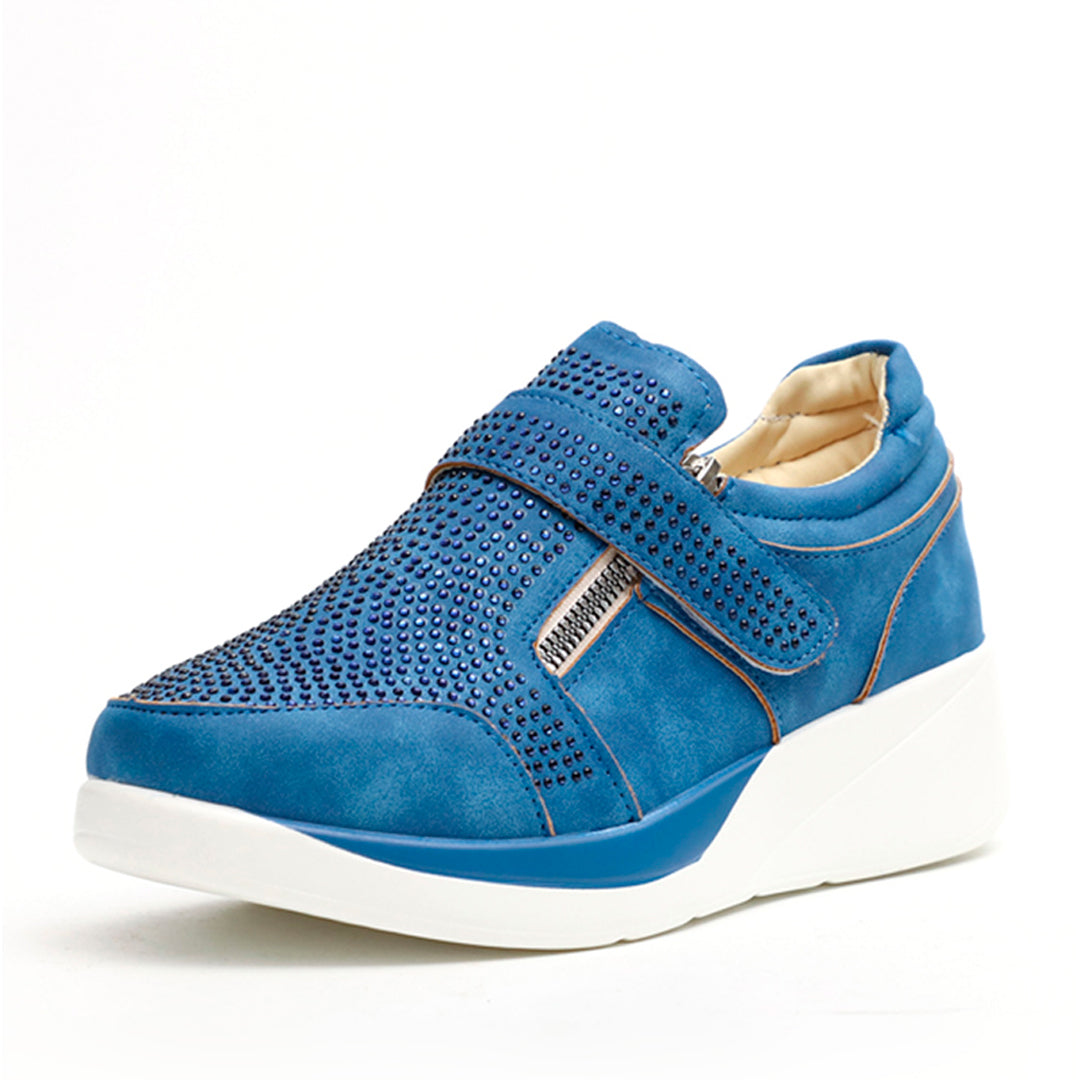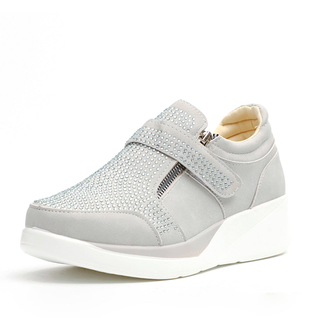Preciosa zapatilla para mujer de lona y de plataforma, diseñadas sin cordones sino con un cierre al costado y velcro para mayor comodidad. ¡Te va a encantar!