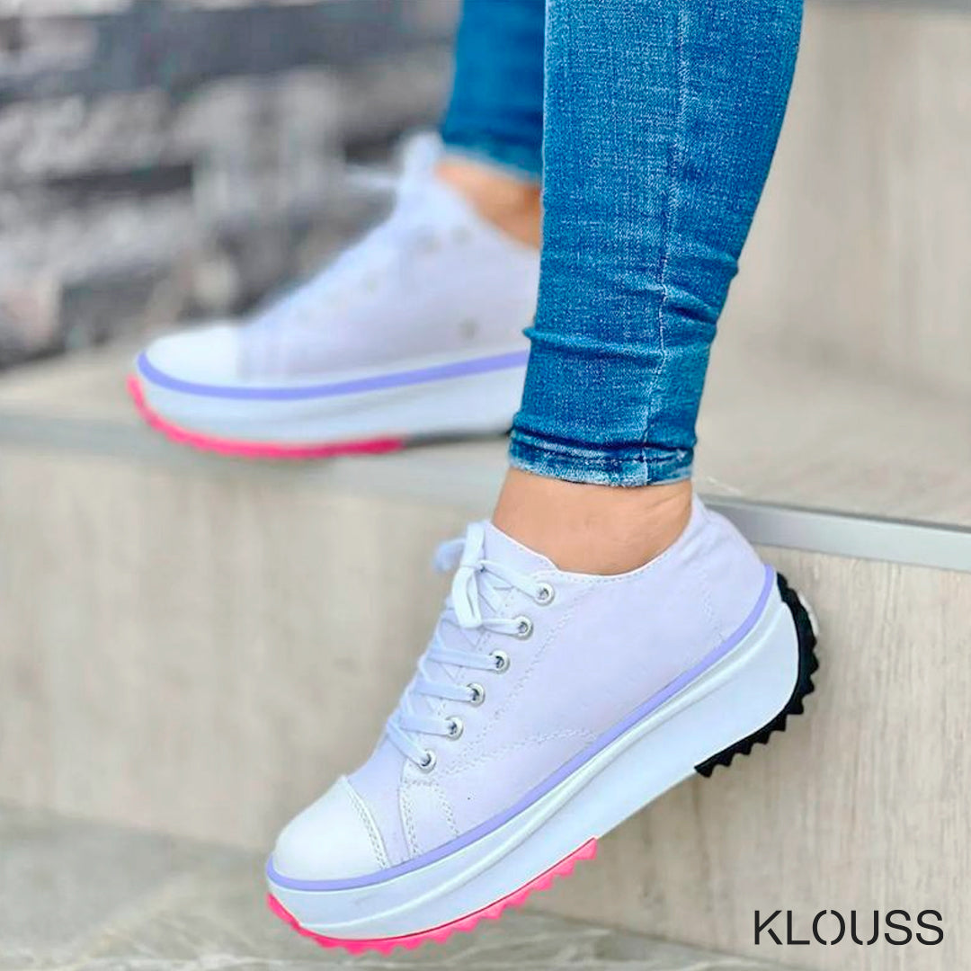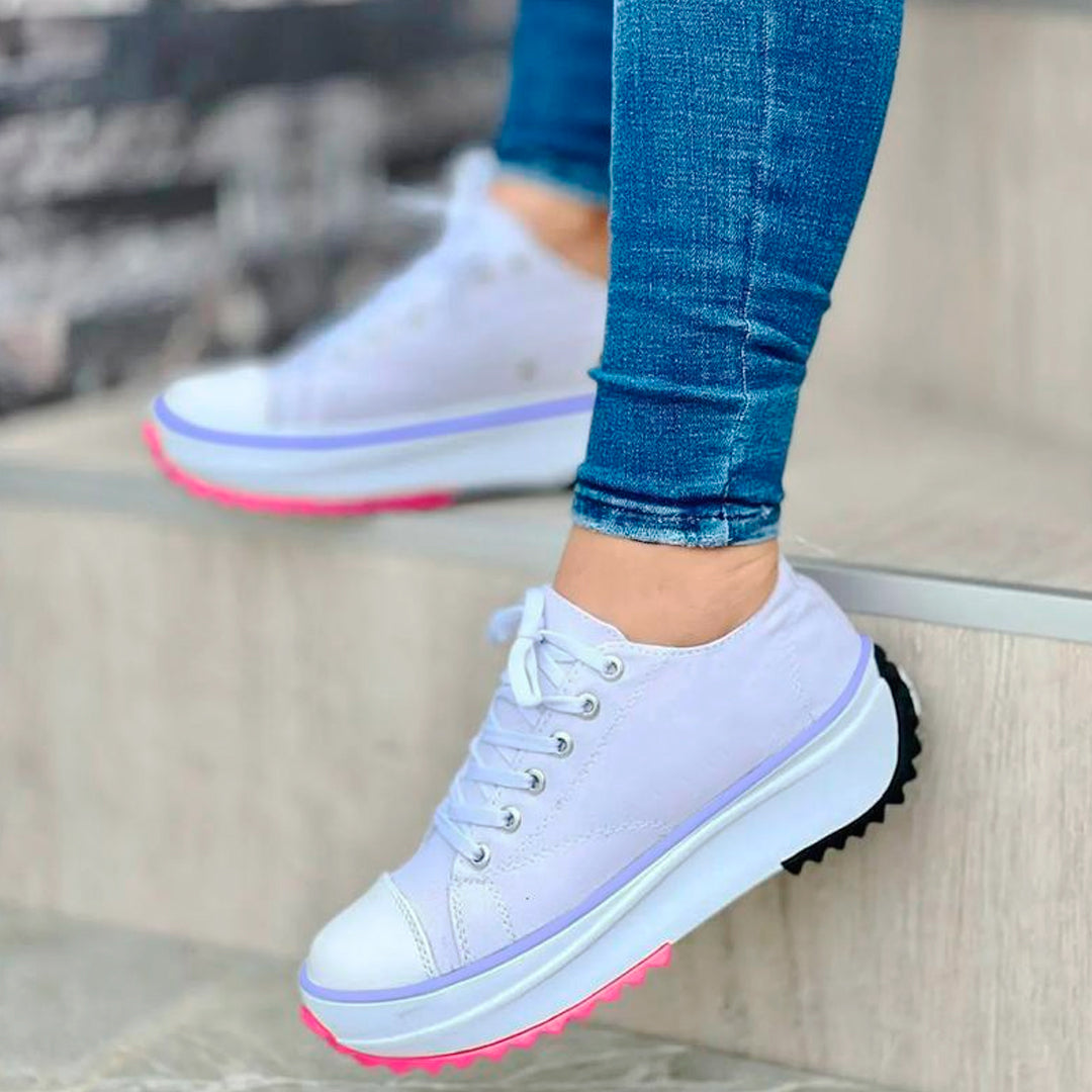 Preciosas zapatillas para mujer de lona con cordones de colores, muy taquilla ¡Te van a encantar!