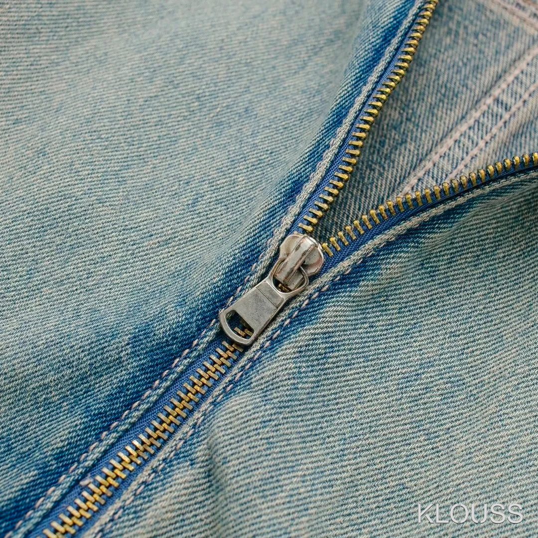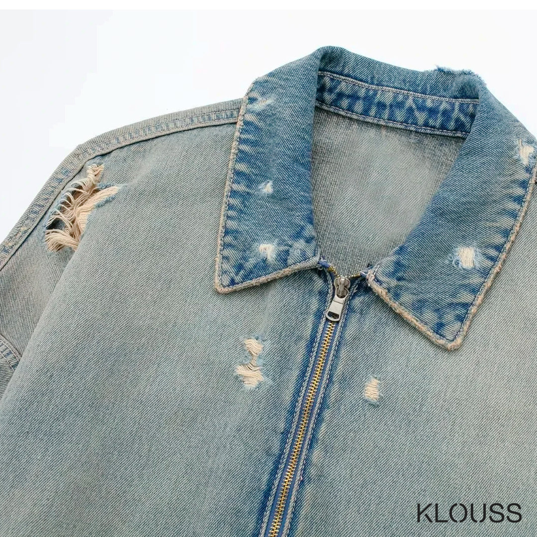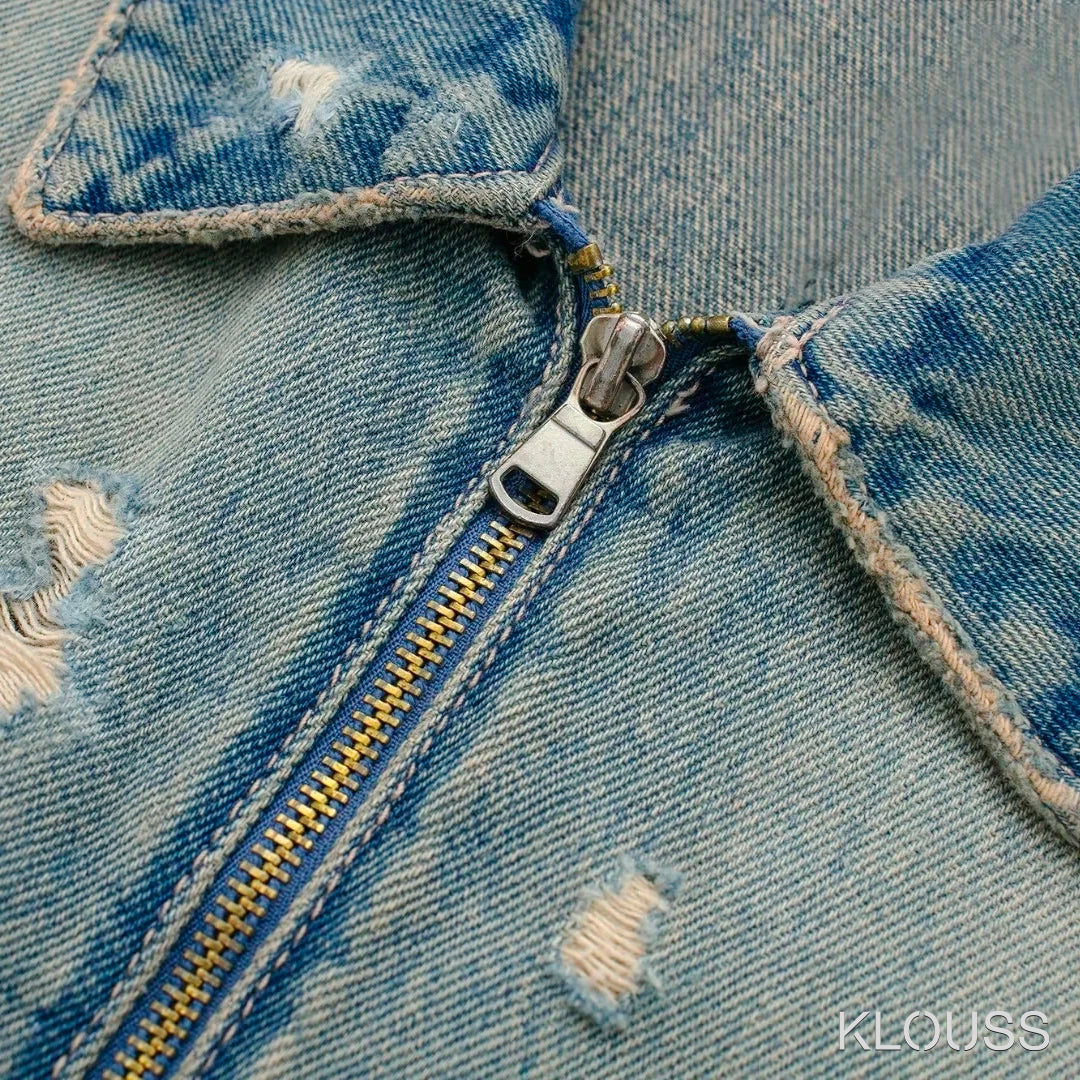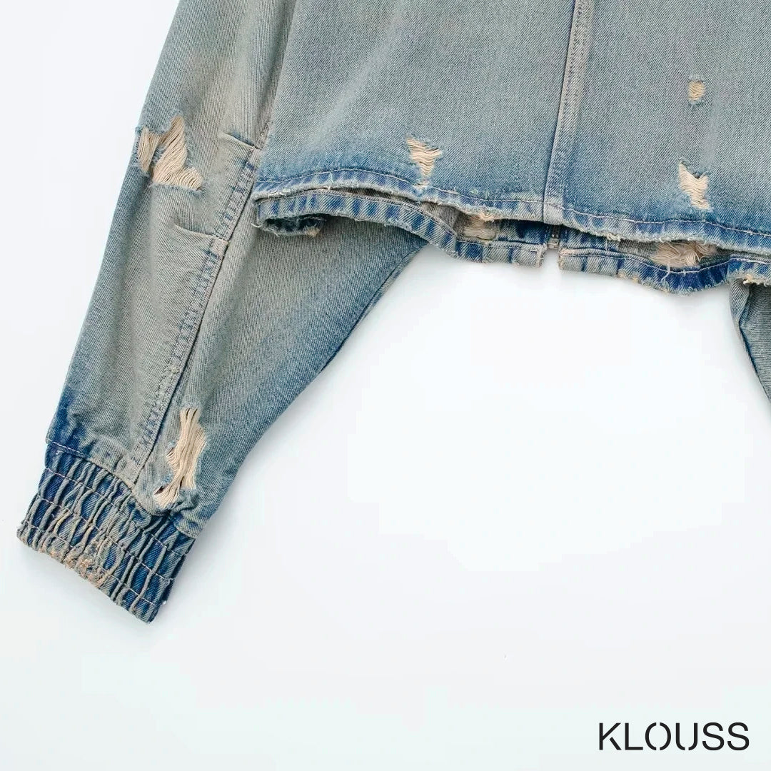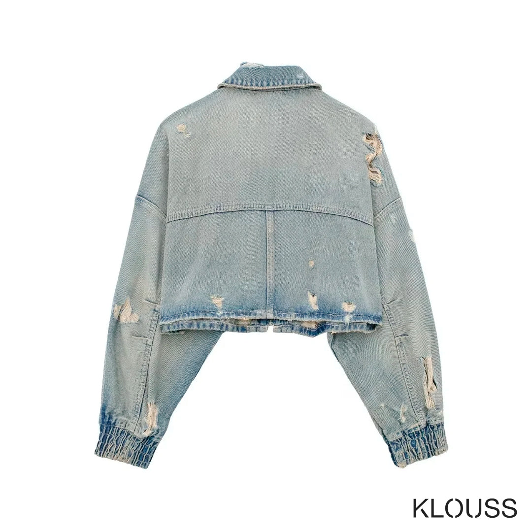 Preciosa chaqueta para mujer de Jean estilo gastado vintage corta, de manga larga con cierre metálico ¡Demasiado taquilla!