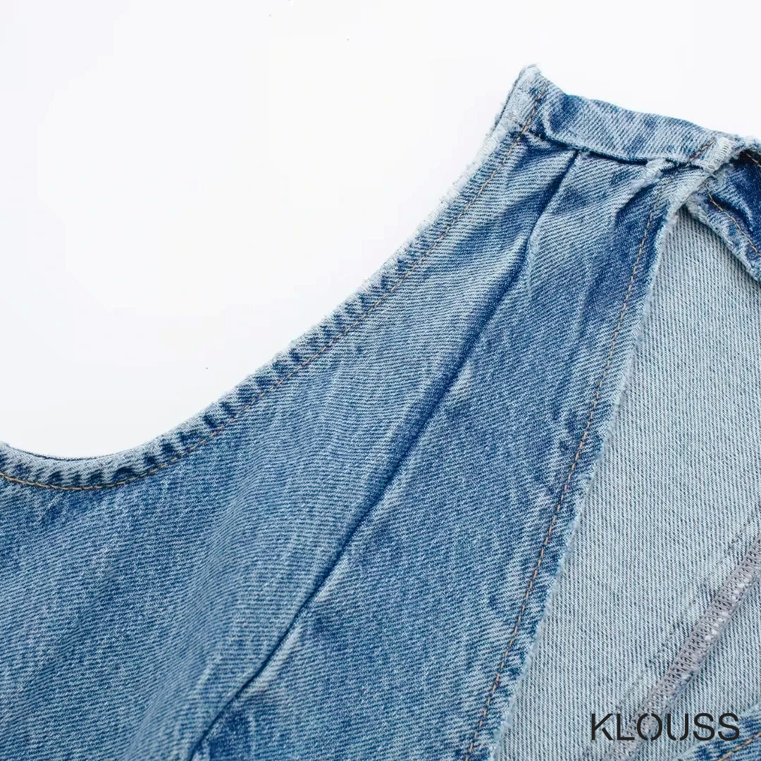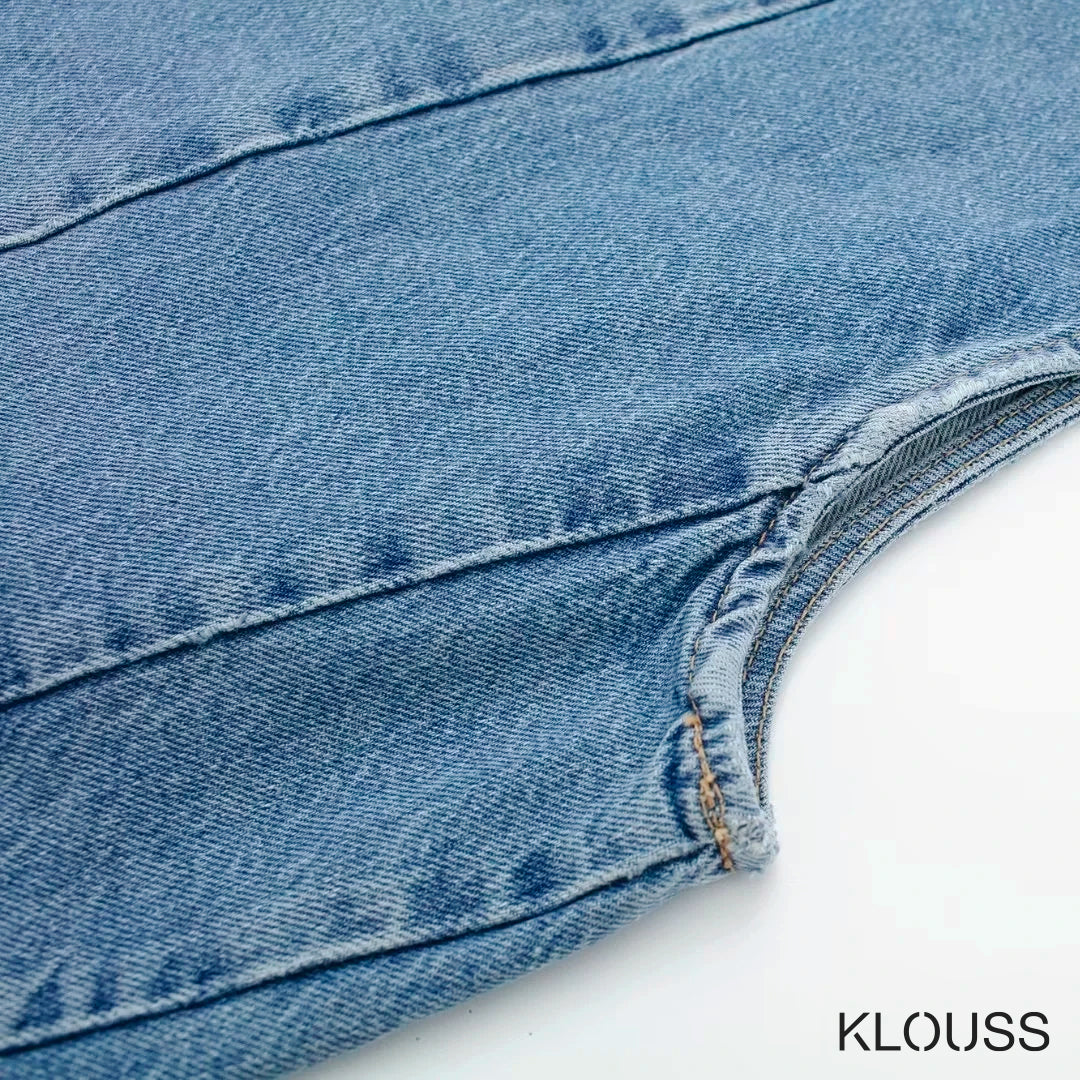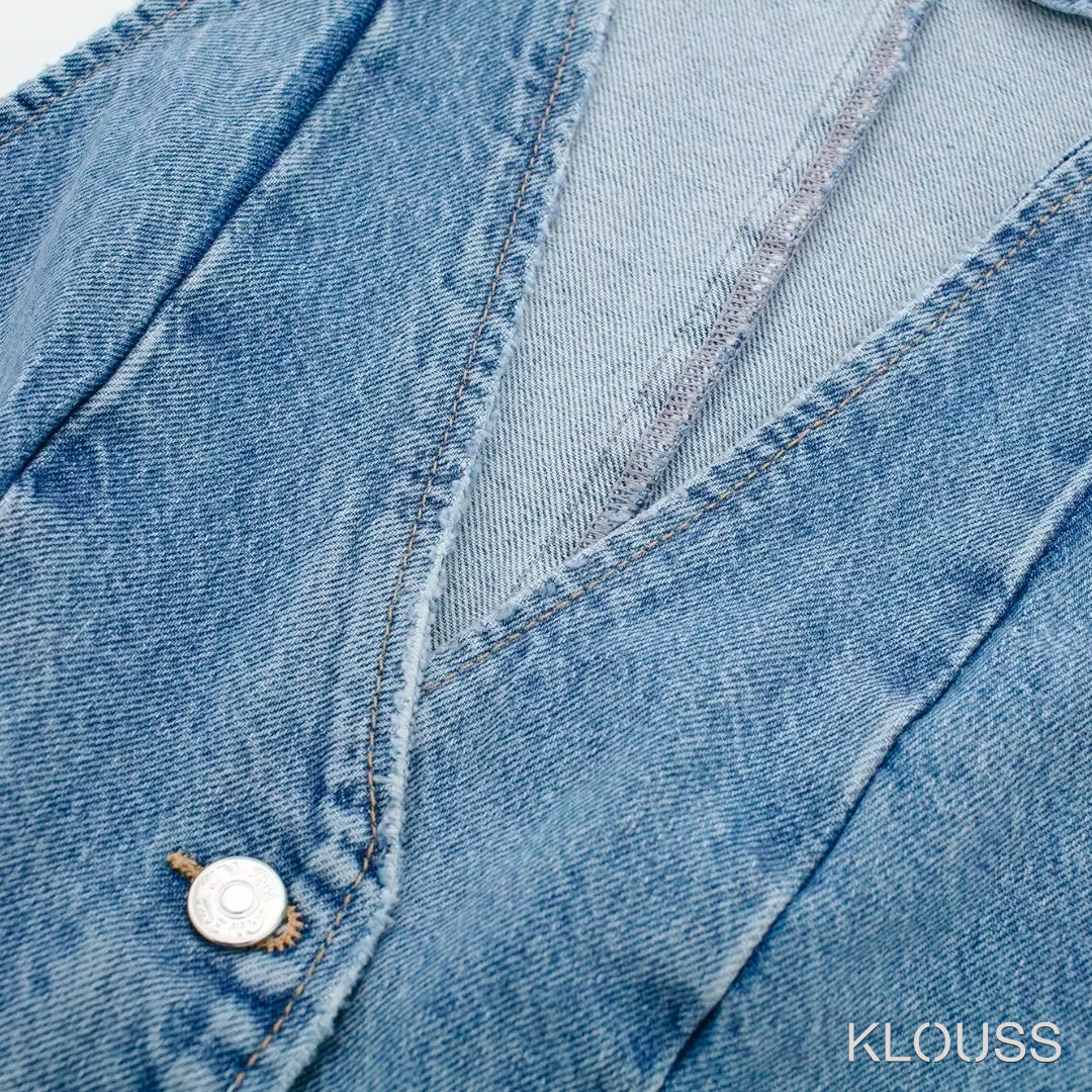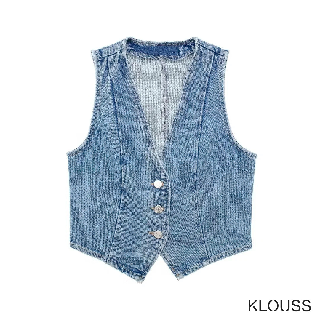 Taquillera chaqueta de Jean sin mangas ajustada, tipo vest, de escote en "V" ideal para primavera y verano ¡Te vas a ver regia!