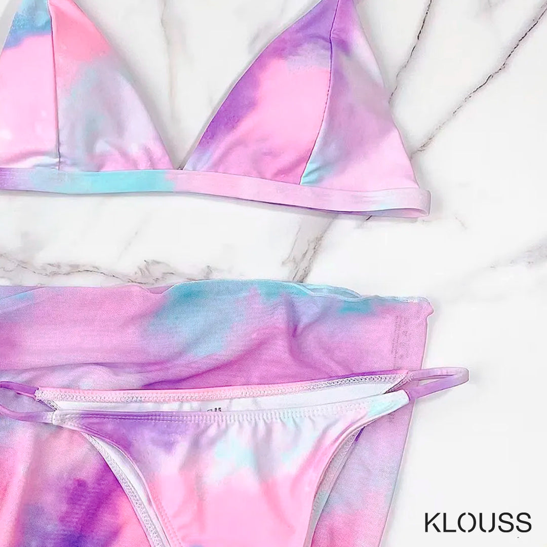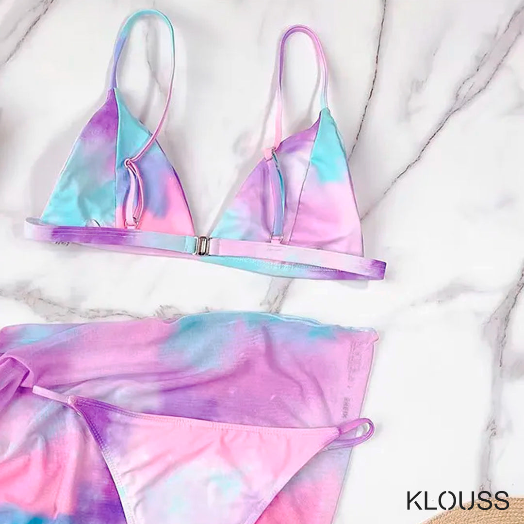 Precioso conjunto de bikini fluorescente con almohadillas para el busto, muy cómodo. Con pareo incluido. ¡Te vas a ver regia!