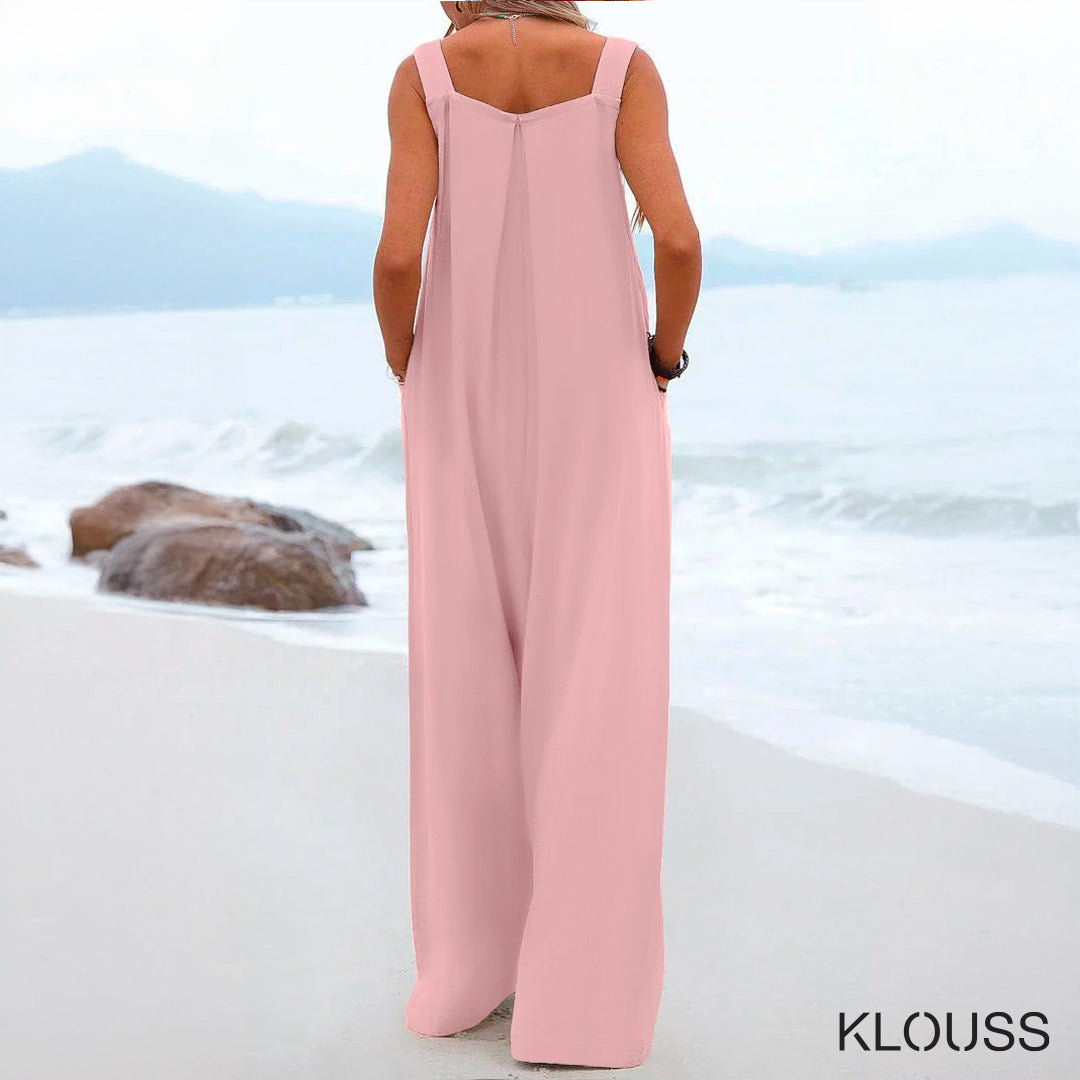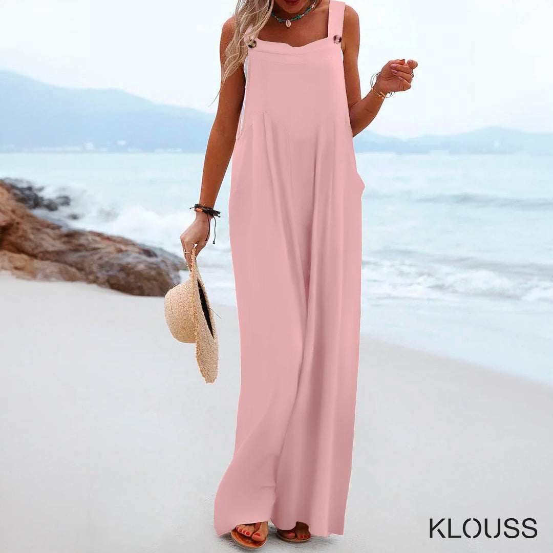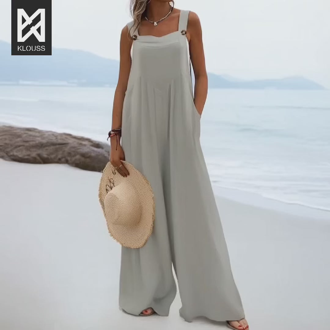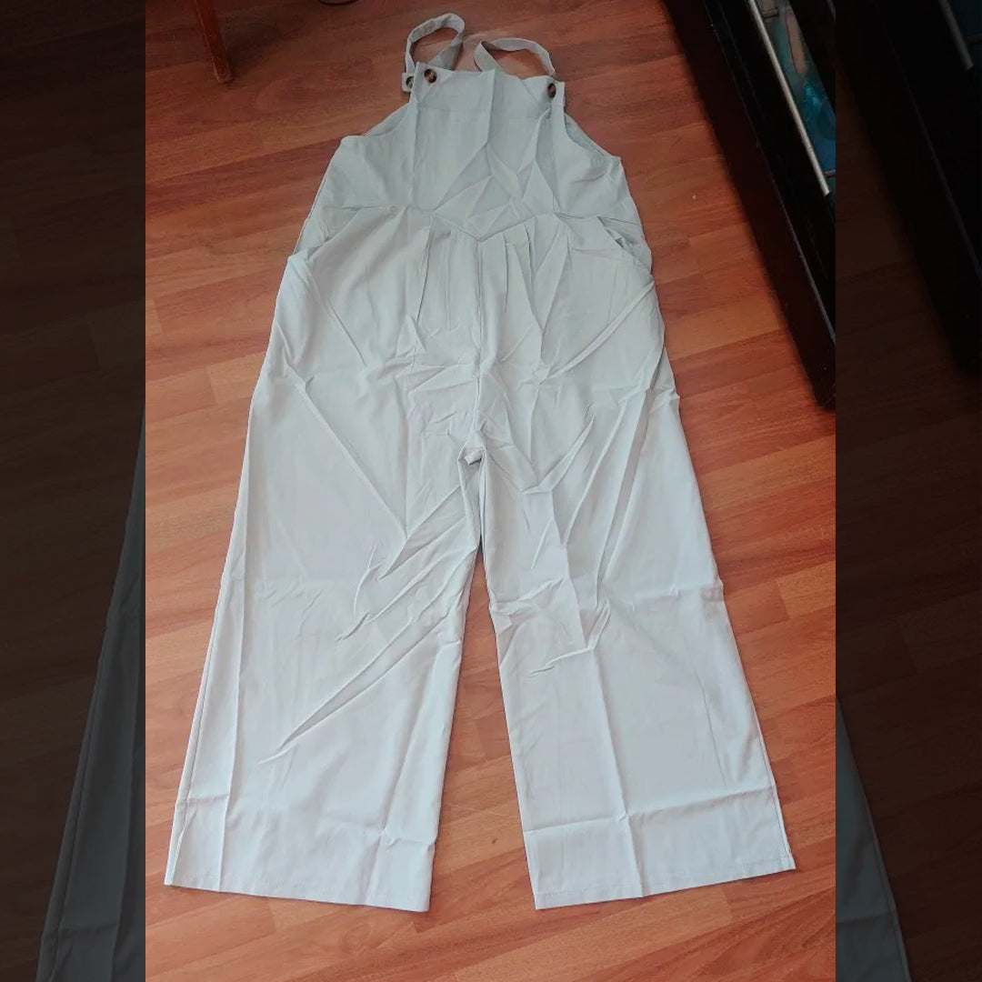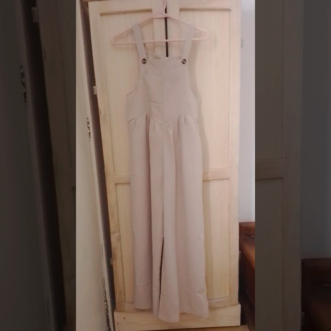 Precioso enterito para mujer de pierna ancha tipo jardinera decorado con botones sin mangas. De color sólido y tela liviana. Disponible en 15 lindos colores ¡Te va a encantar!