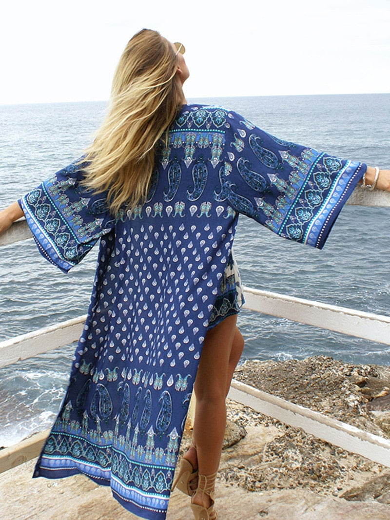 Lindo kimono playero con diseño estampado en serie en un precioso tono azul. ¡Muy taquilla!