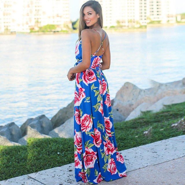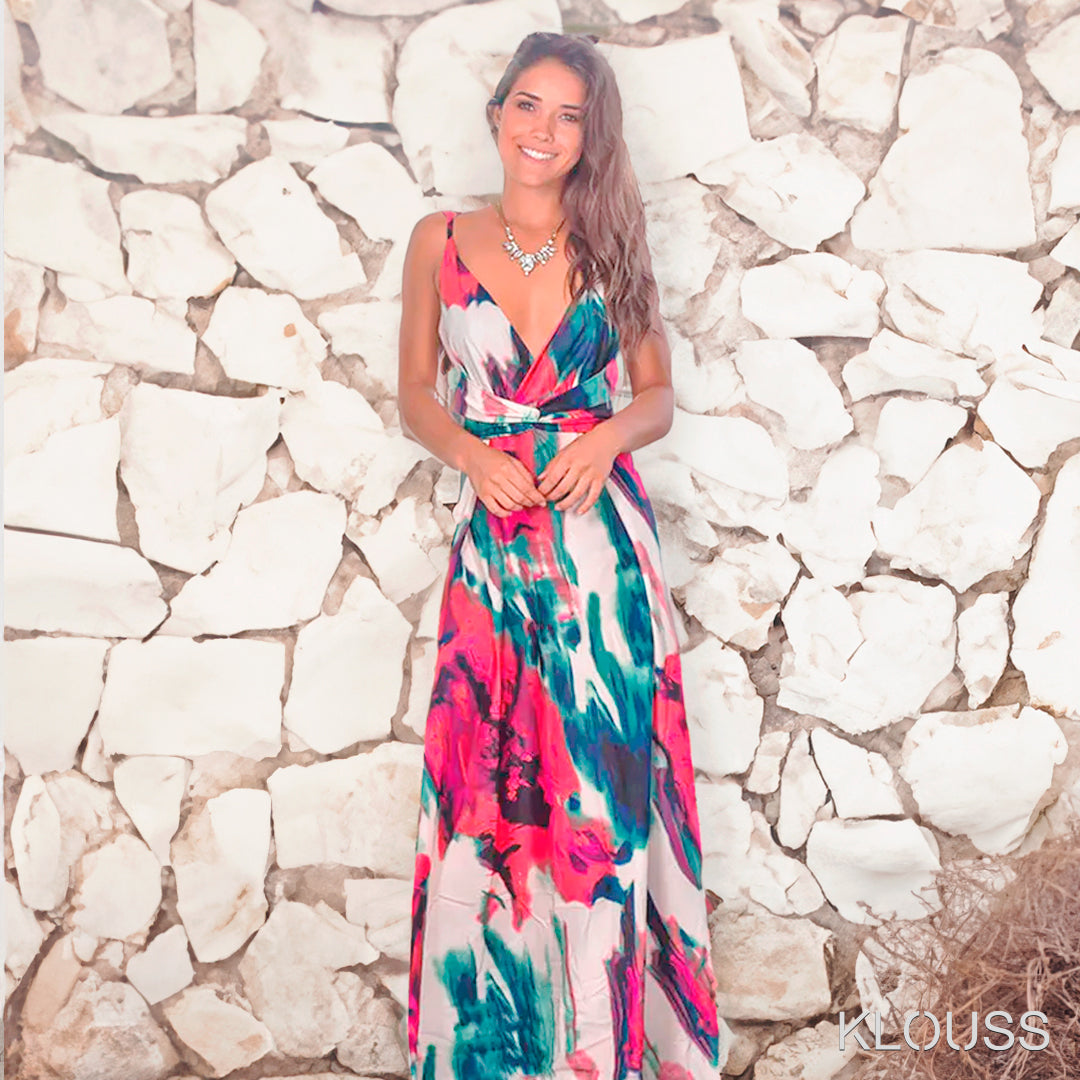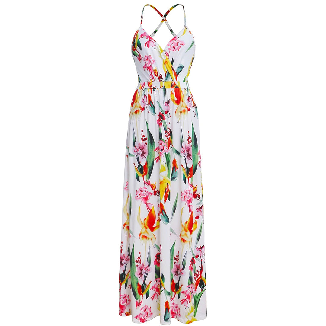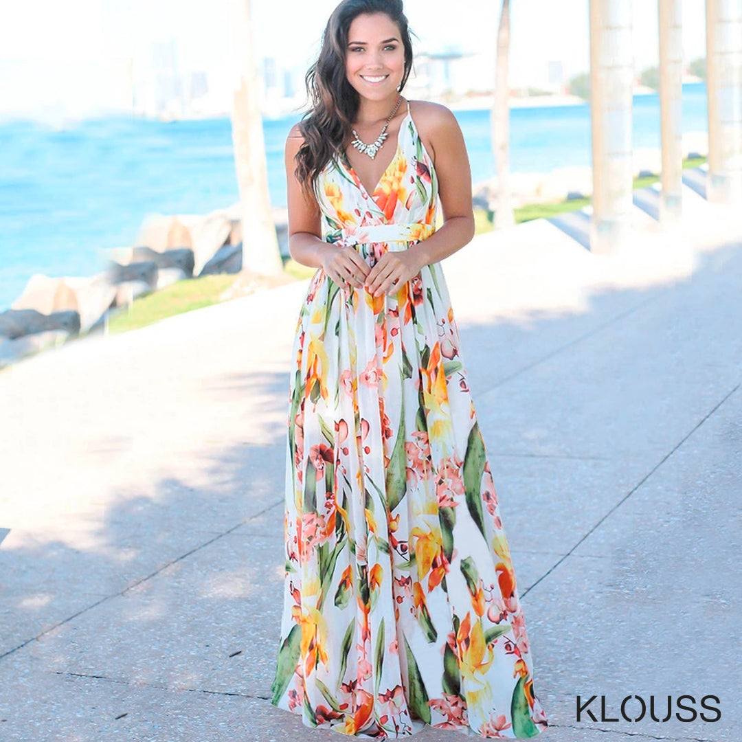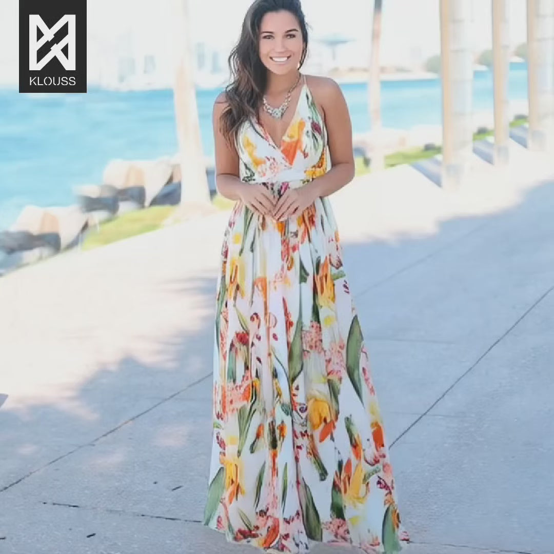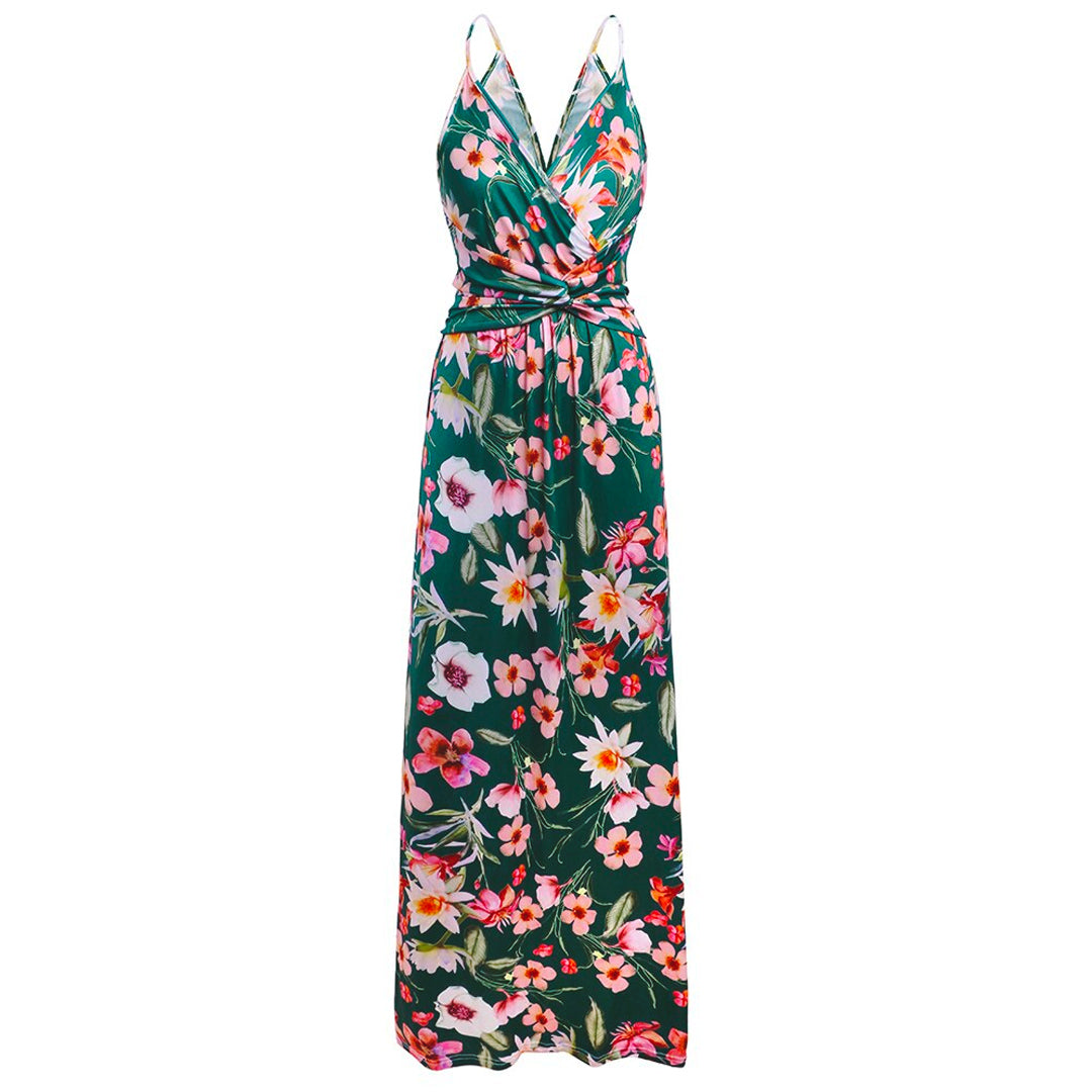 Espectacular vestido largo de primavera y verano de cintura alta con cuello en V, espalda abierta, sin mangas, con diferentes estampados ¡Te va a encantar!