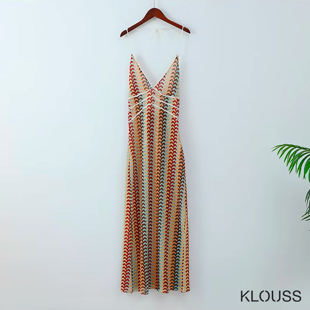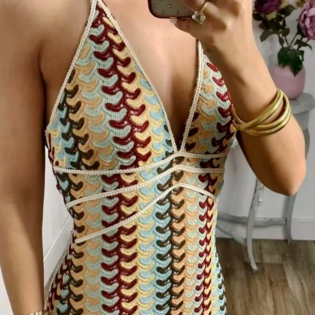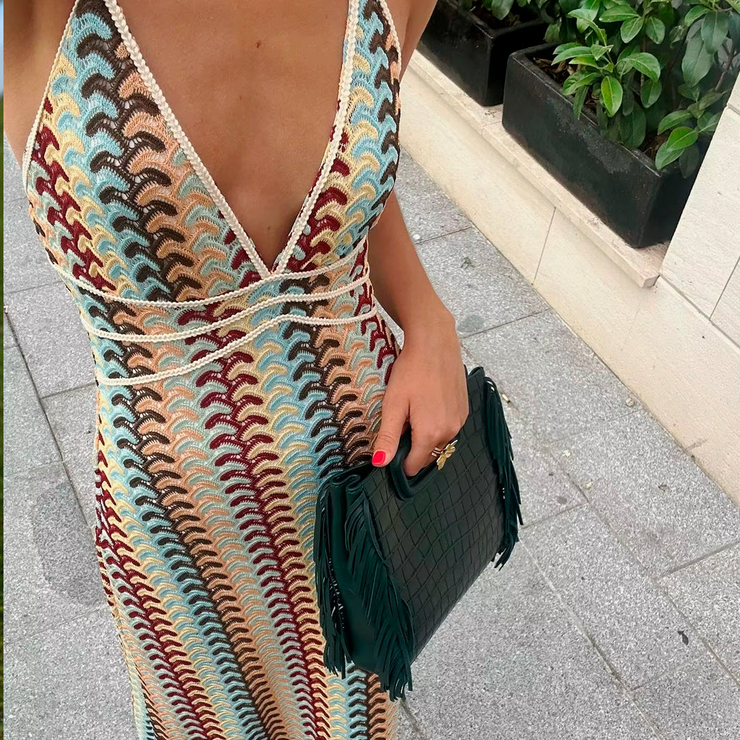 Vestido largo de verano para mujer estilo crochet ideal para la playa, piscina o eventos para esos dias de calor. Diseñado de escote en "v" , espalda descubierta y cintura alta. ¡Te vas a ver estupenda!