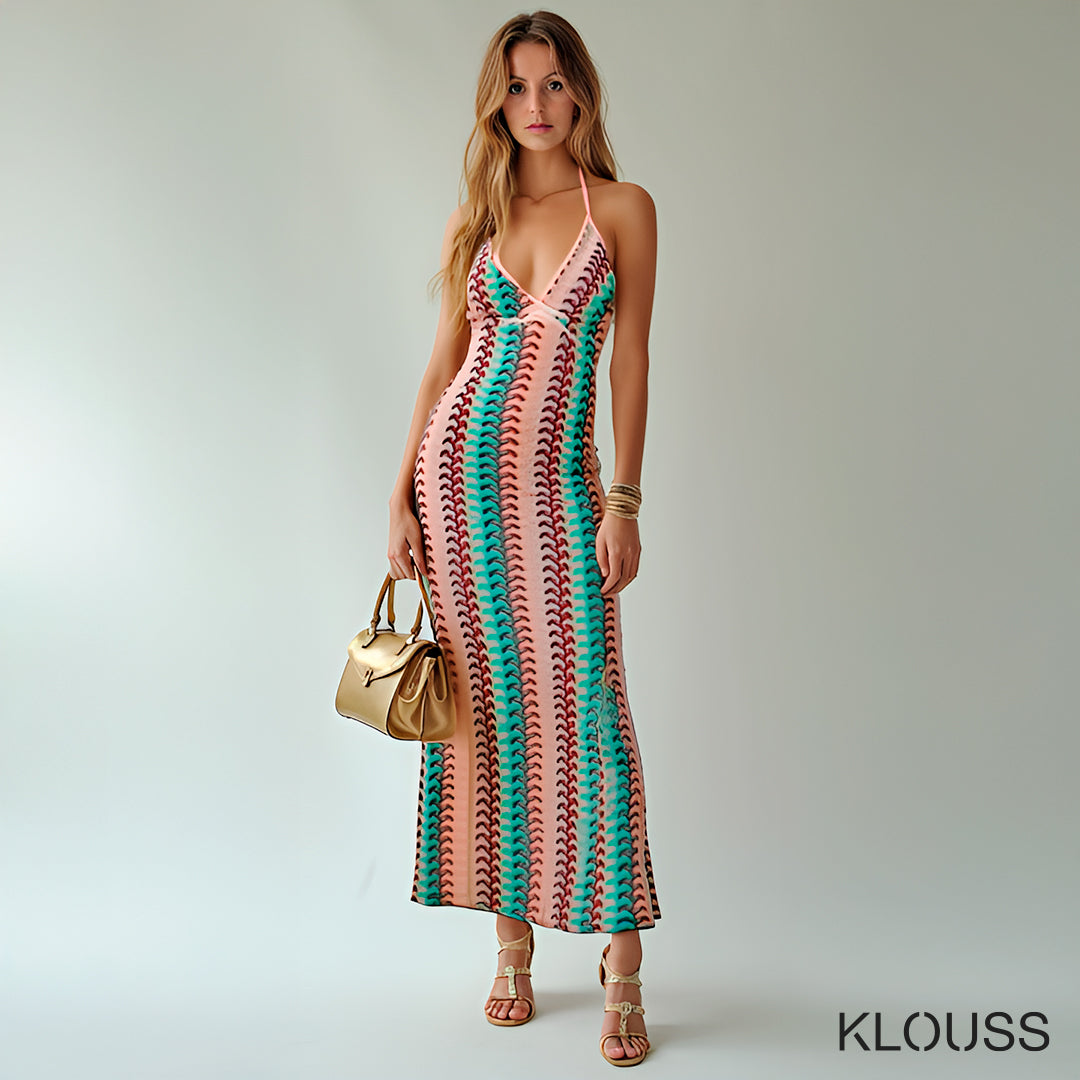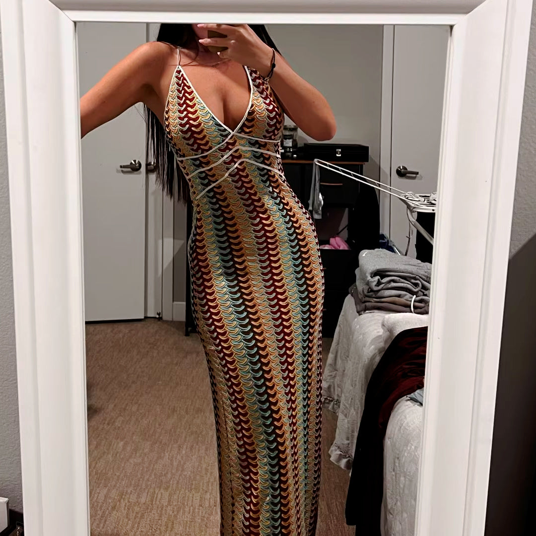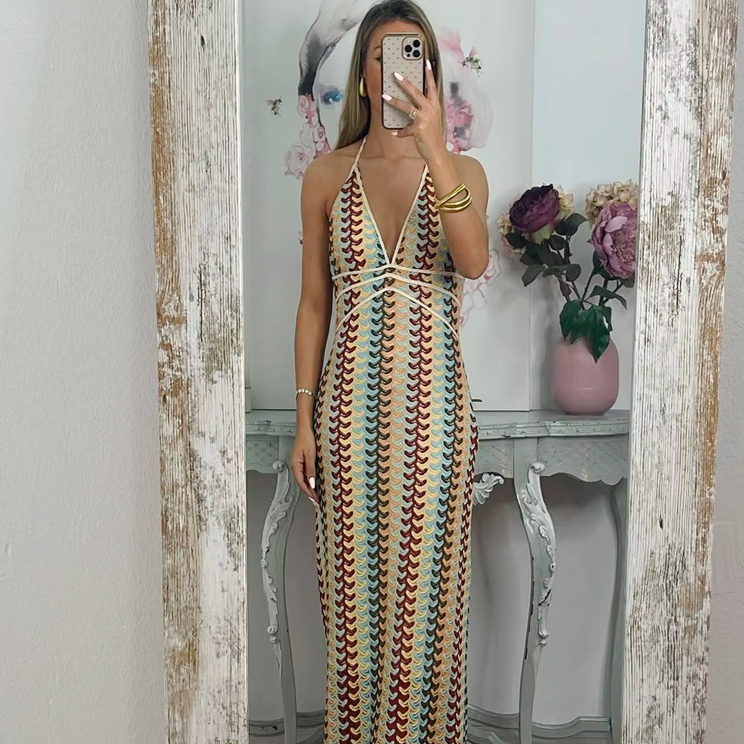 Vestido largo de verano para mujer estilo crochet ideal para la playa, piscina o eventos para esos dias de calor. Diseñado de escote en "v" , espalda descubierta y cintura alta. ¡Te vas a ver estupenda!